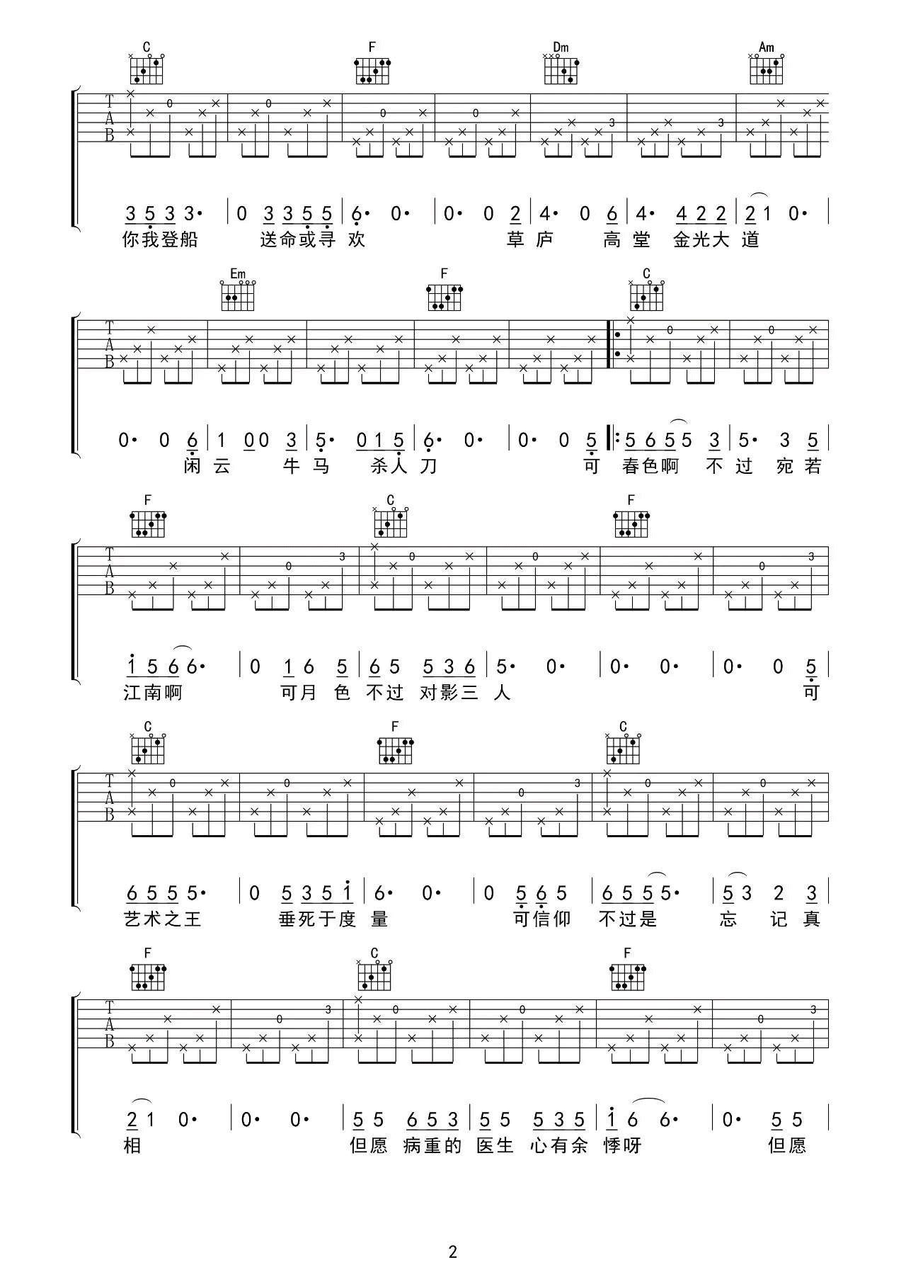 国王与乞丐吉他谱 华晨宇 G调高清弹唱