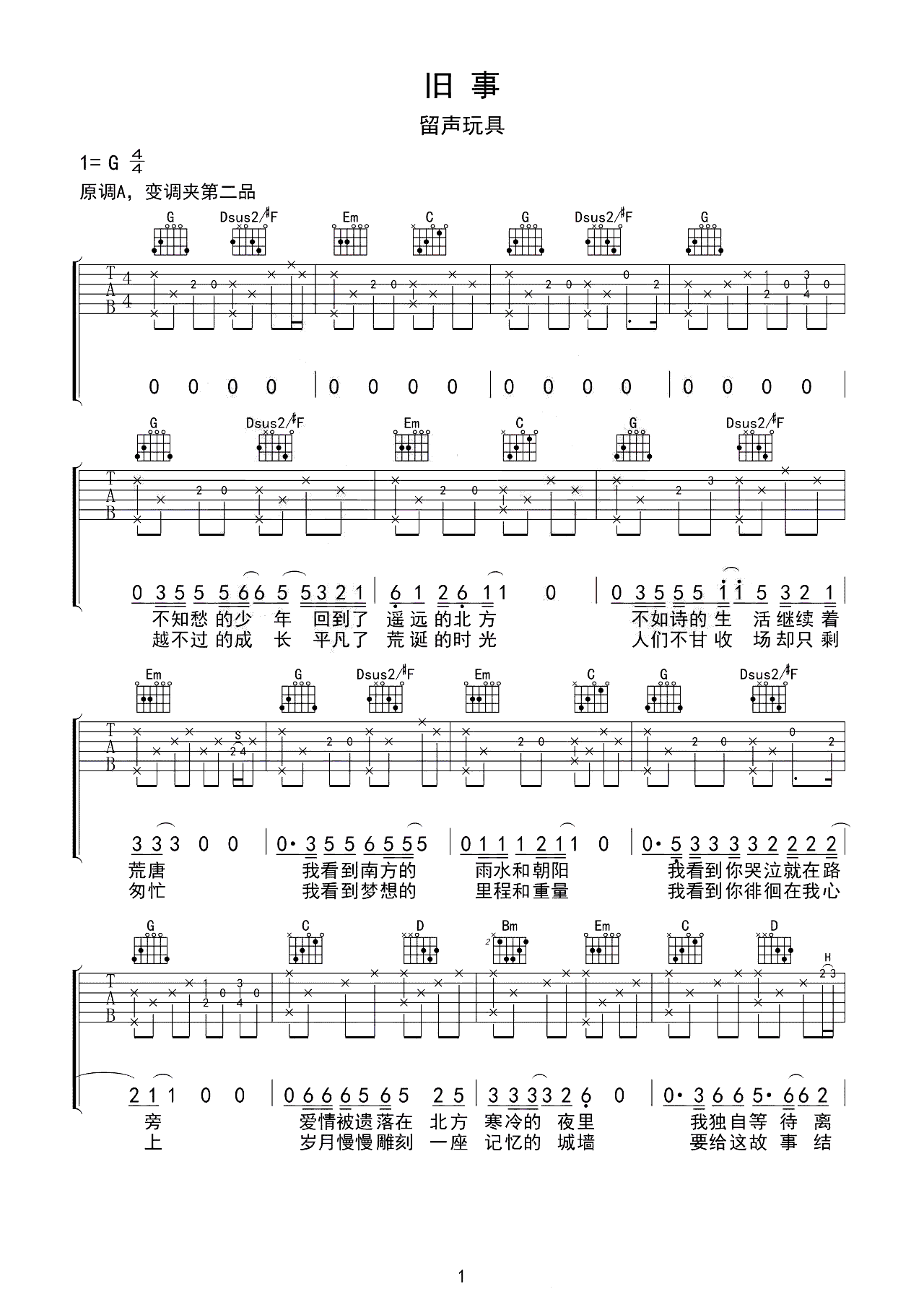 吉他谱 | 热门弹唱《旧事》