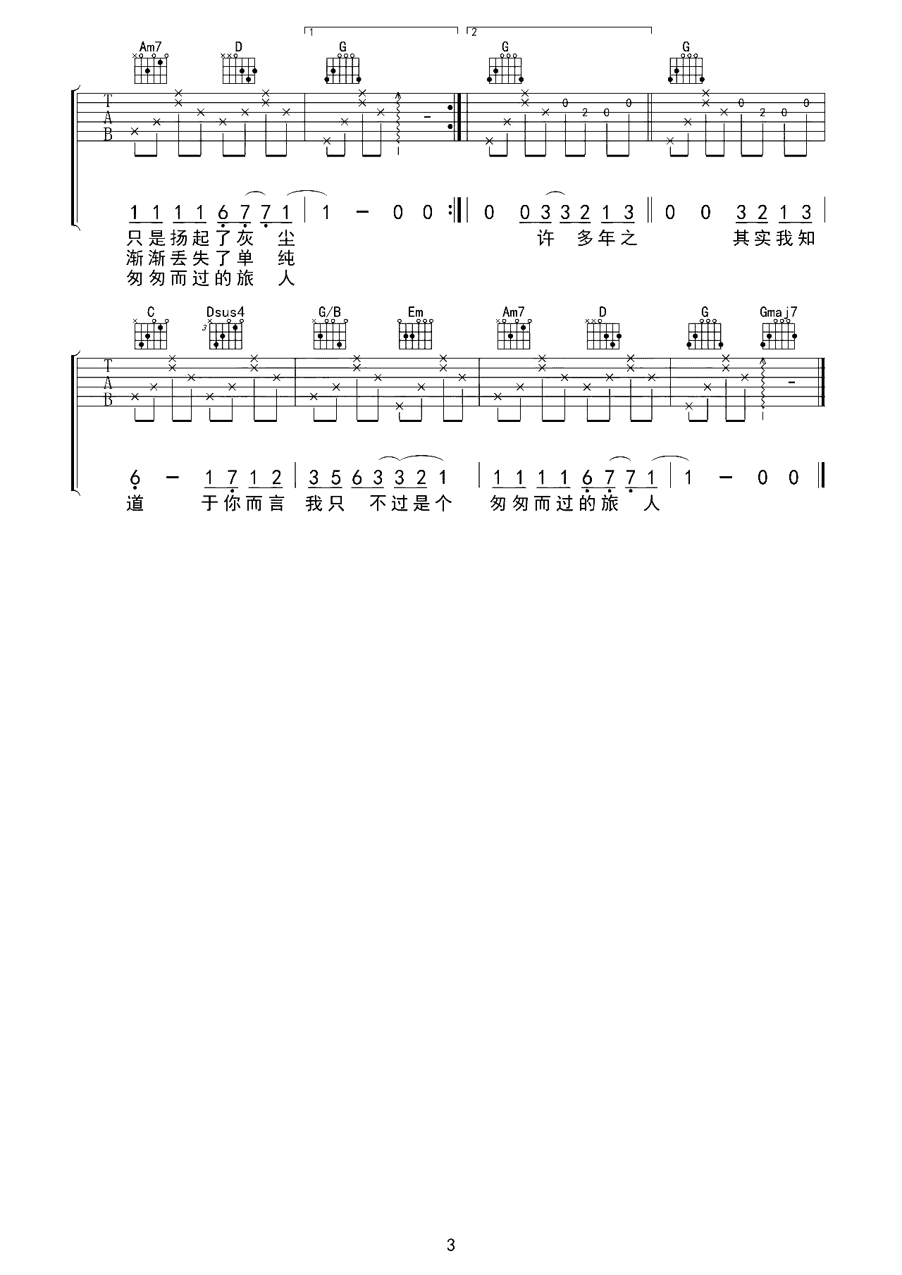 演员吉他谱_薛之谦《演员》六线谱_完整