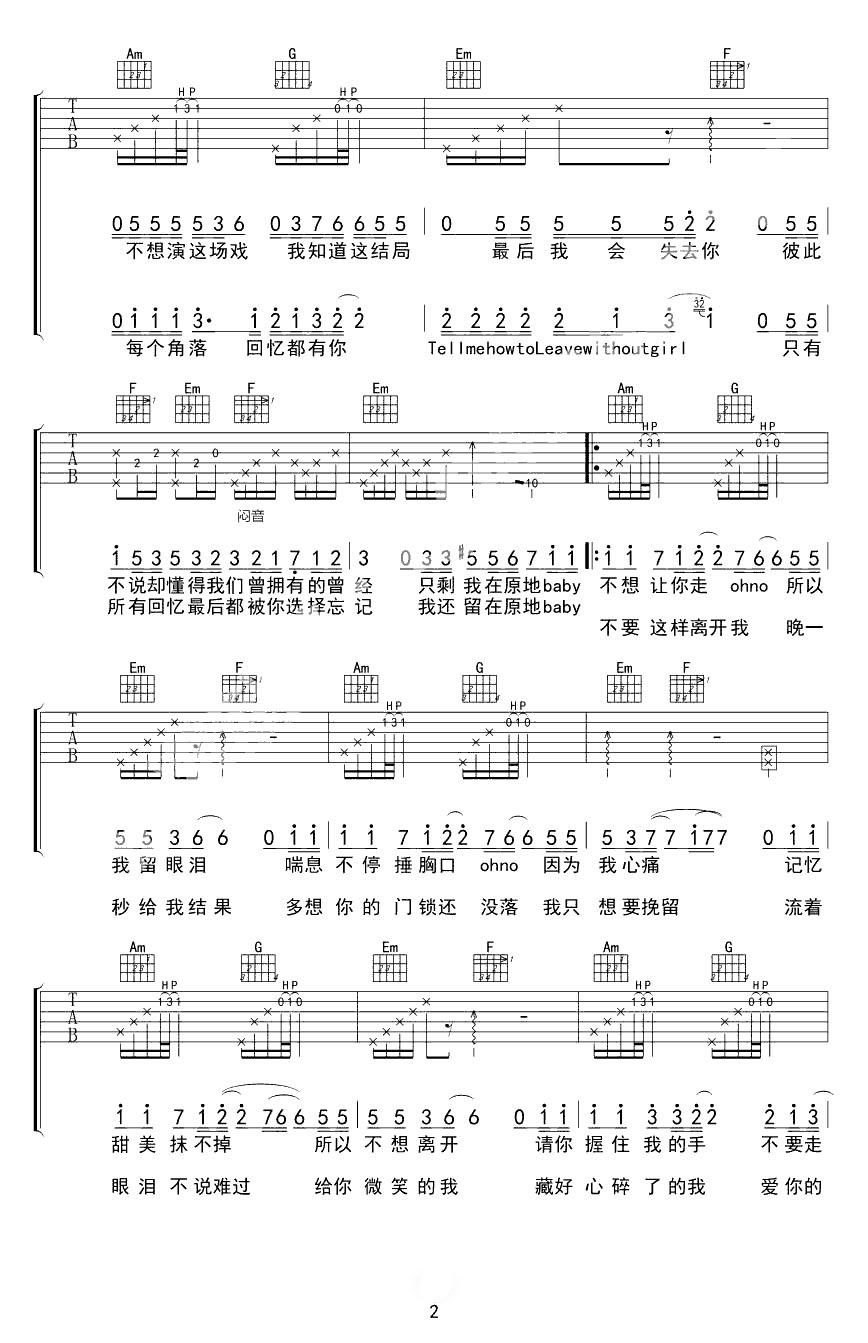 离不开你 指弹吉他谱