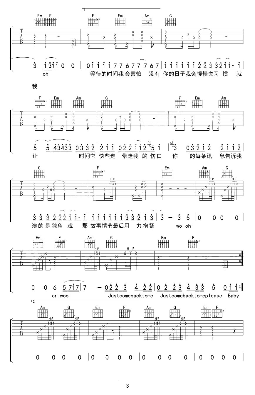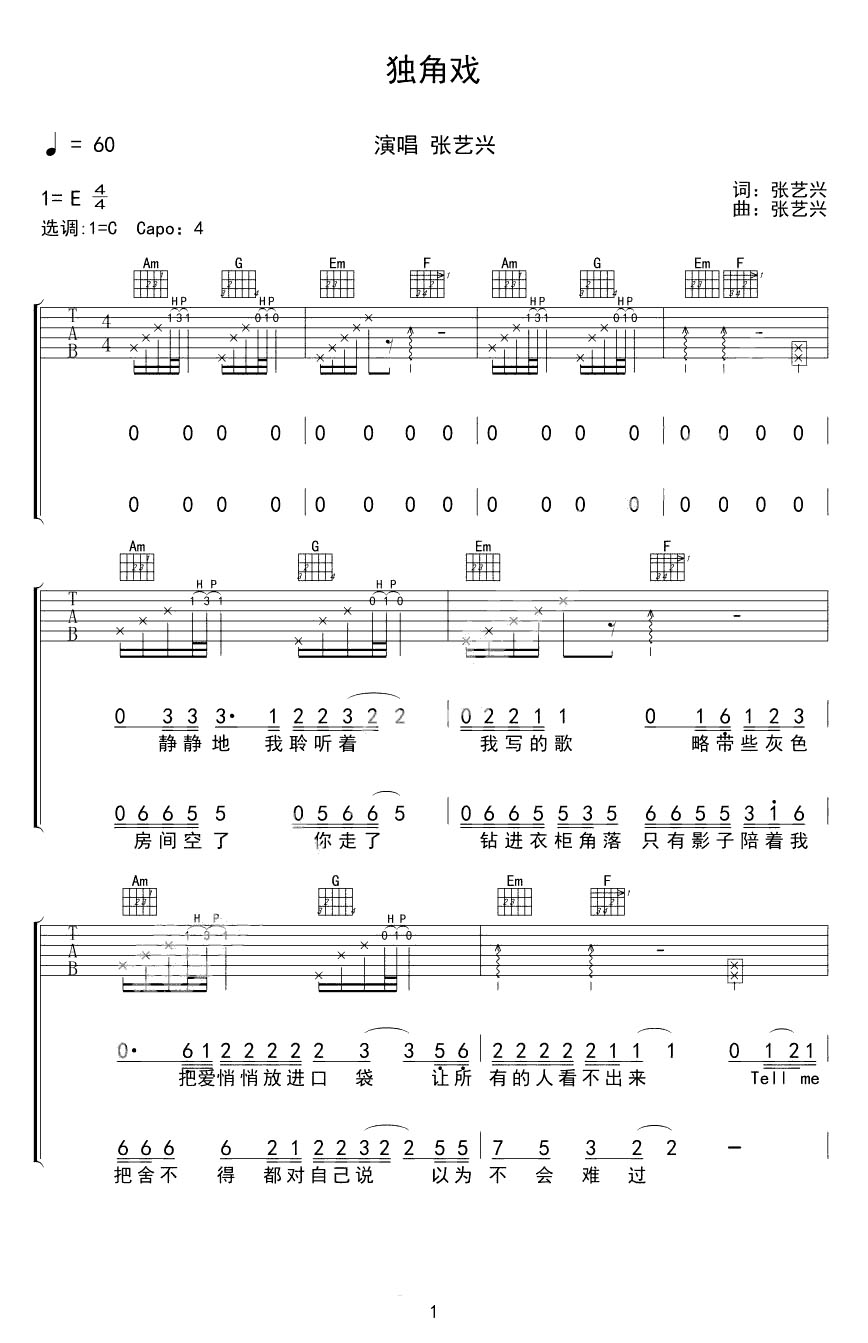 吉他谱 | 热门弹唱《独角戏》