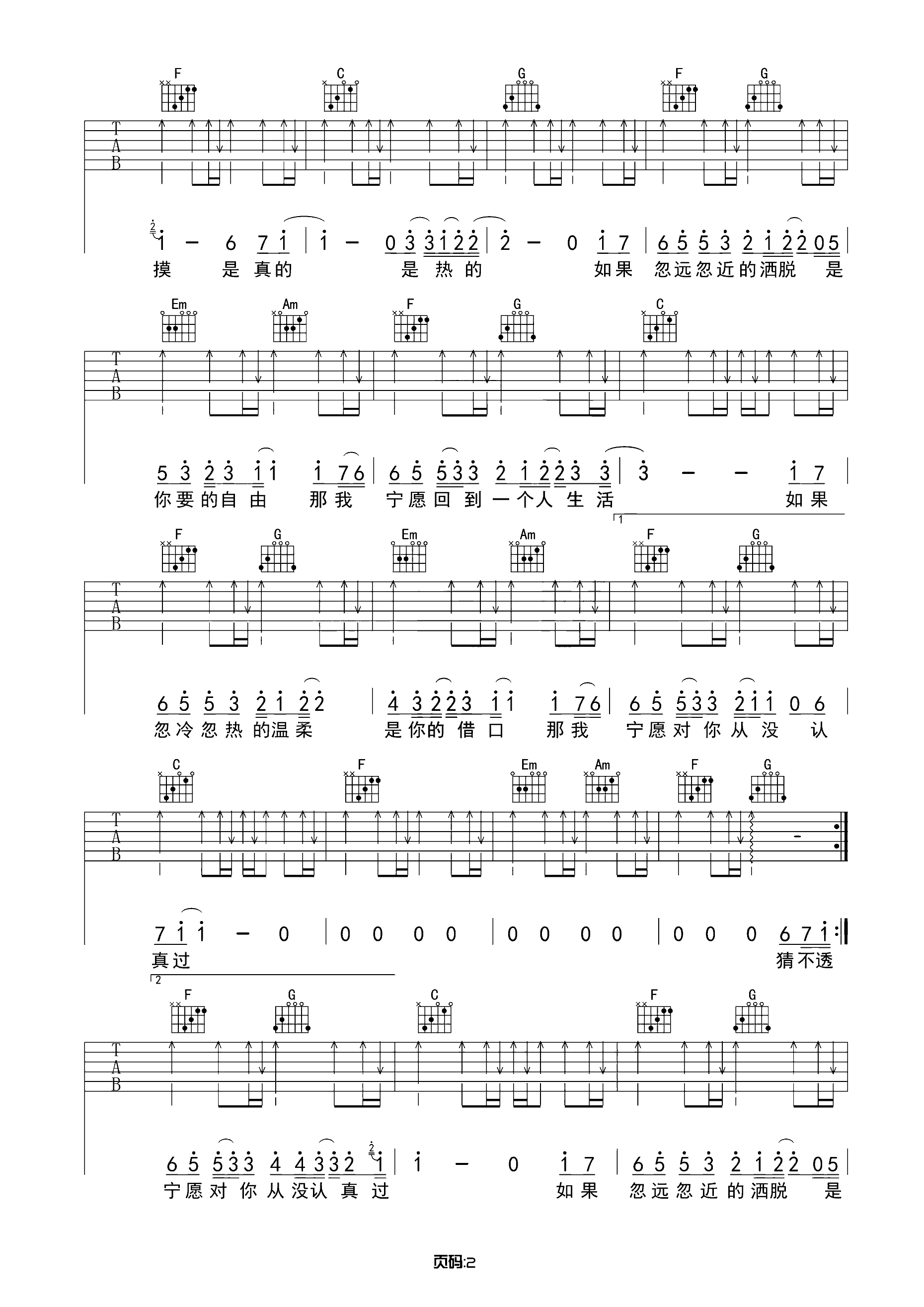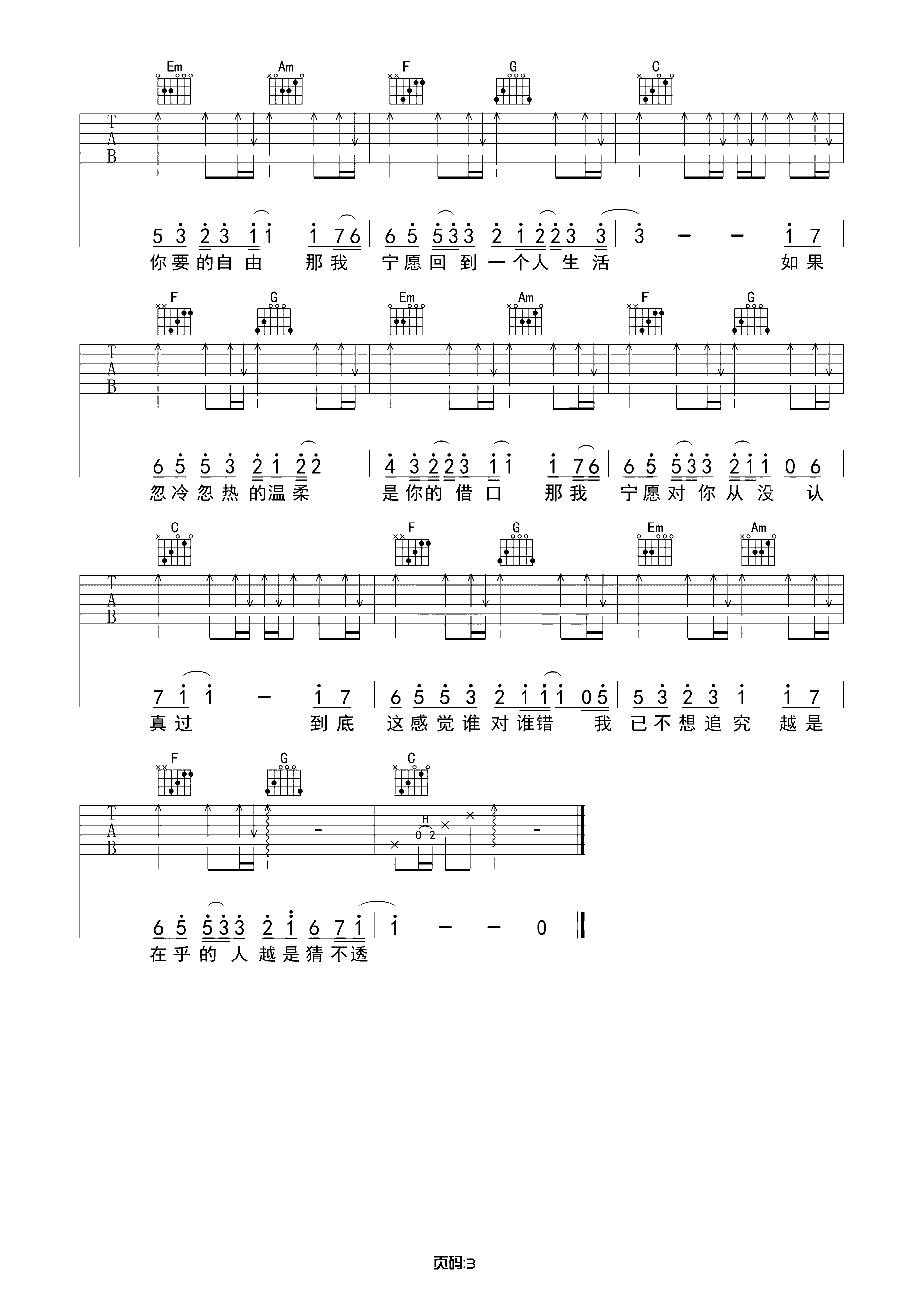 吉他谱 | 热门弹唱《猜不透》