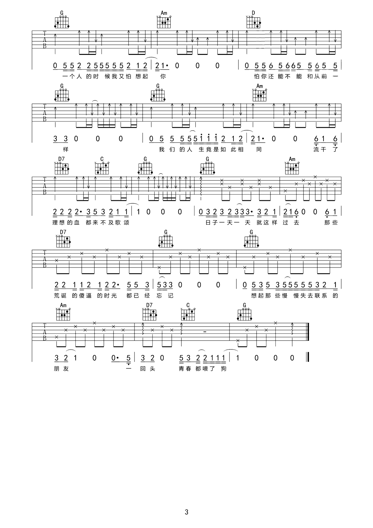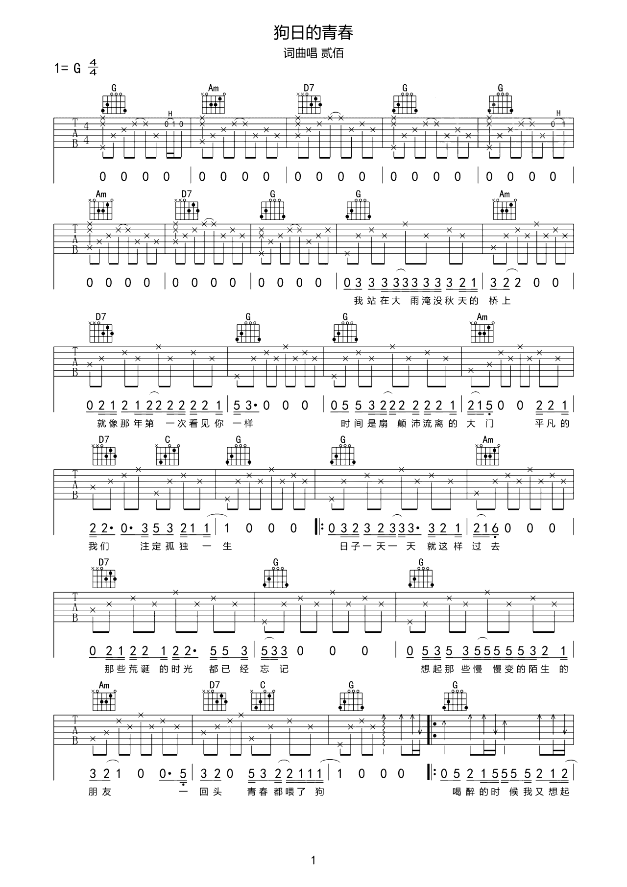 吉他谱 | 热门弹唱《狗日的青春》