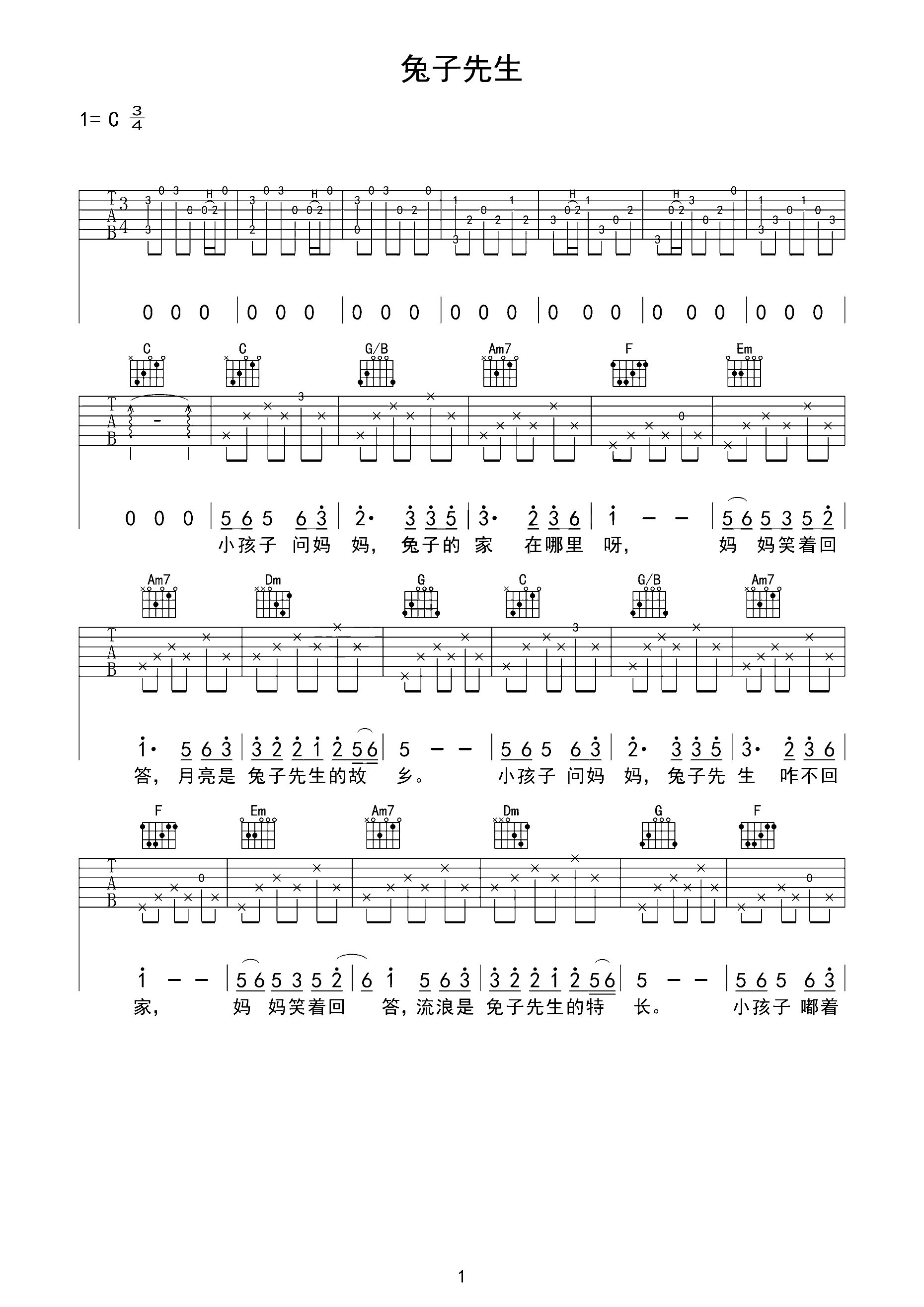 吉他谱 | 热门弹唱《兔子先生》