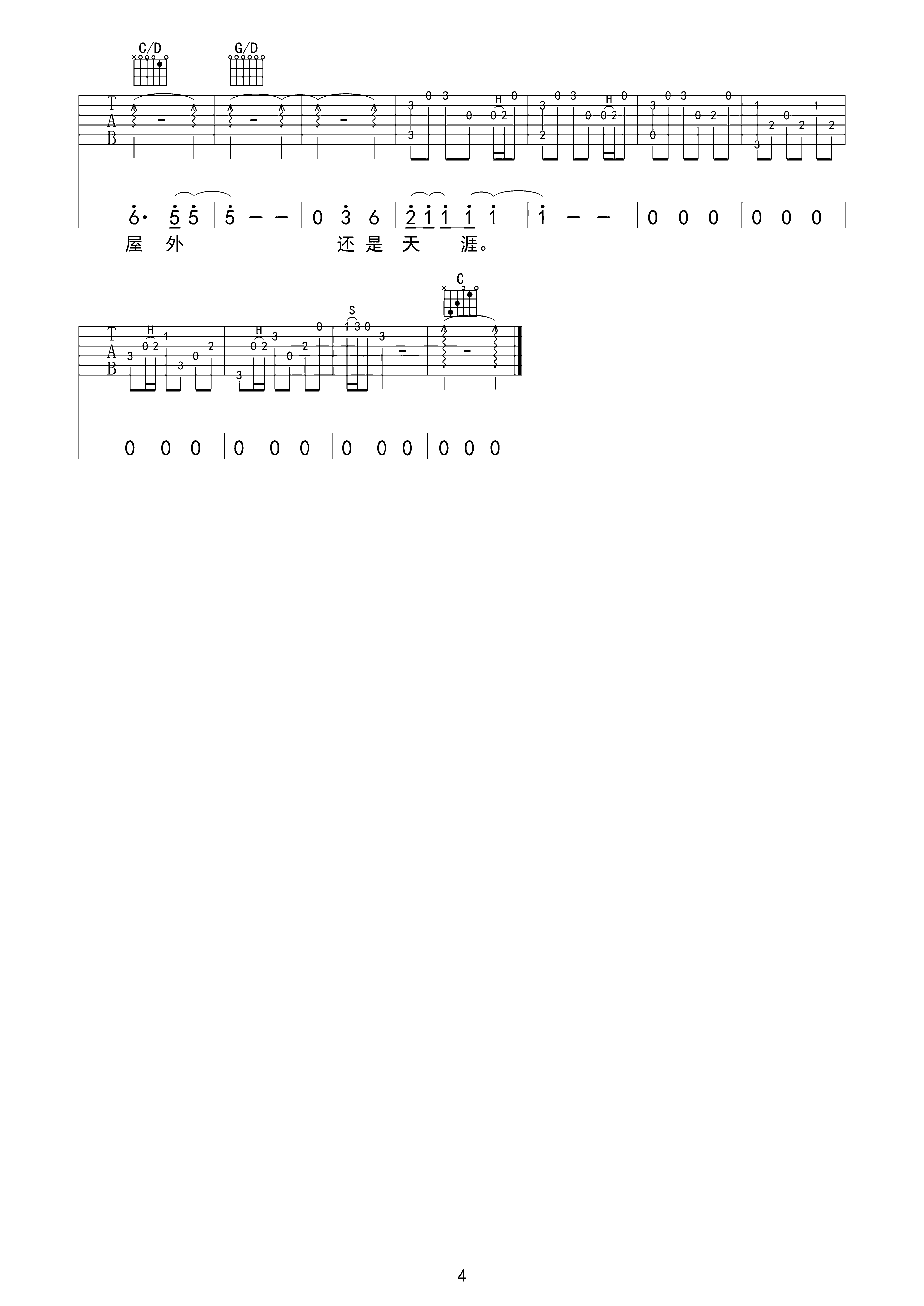 三天三夜 中国好声音吉他谱