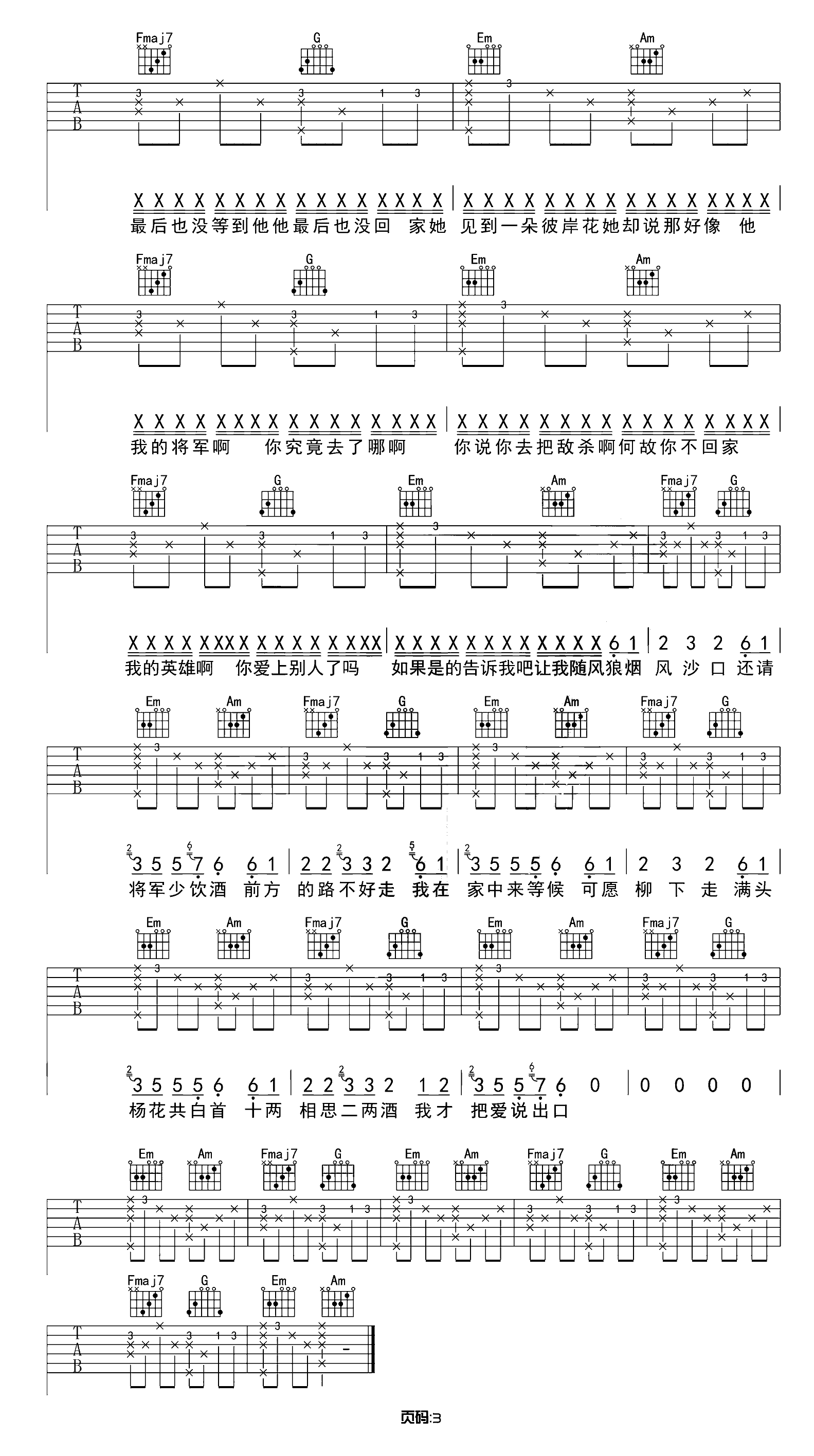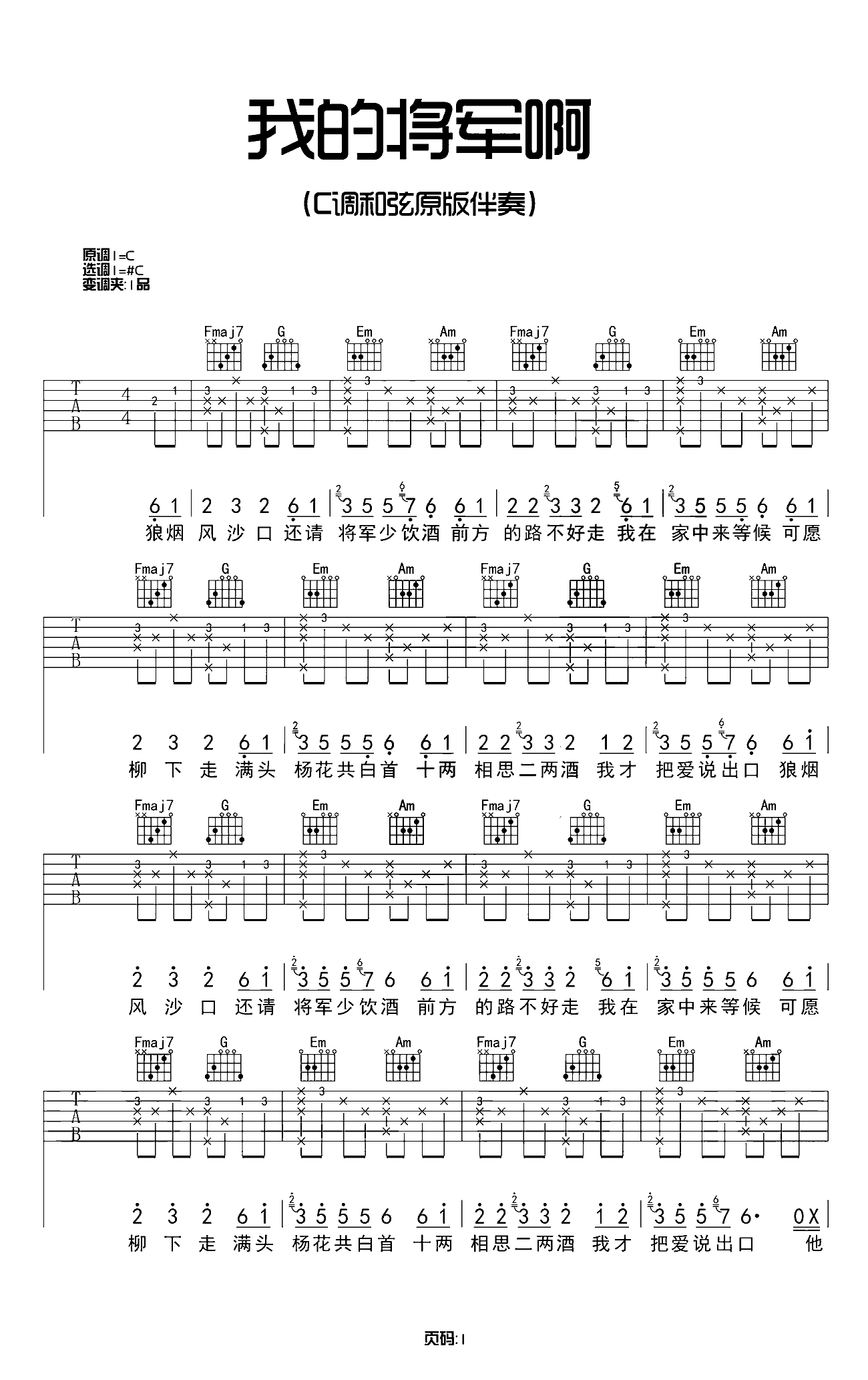 吉他谱 | 热门弹唱《我的将军啊》
