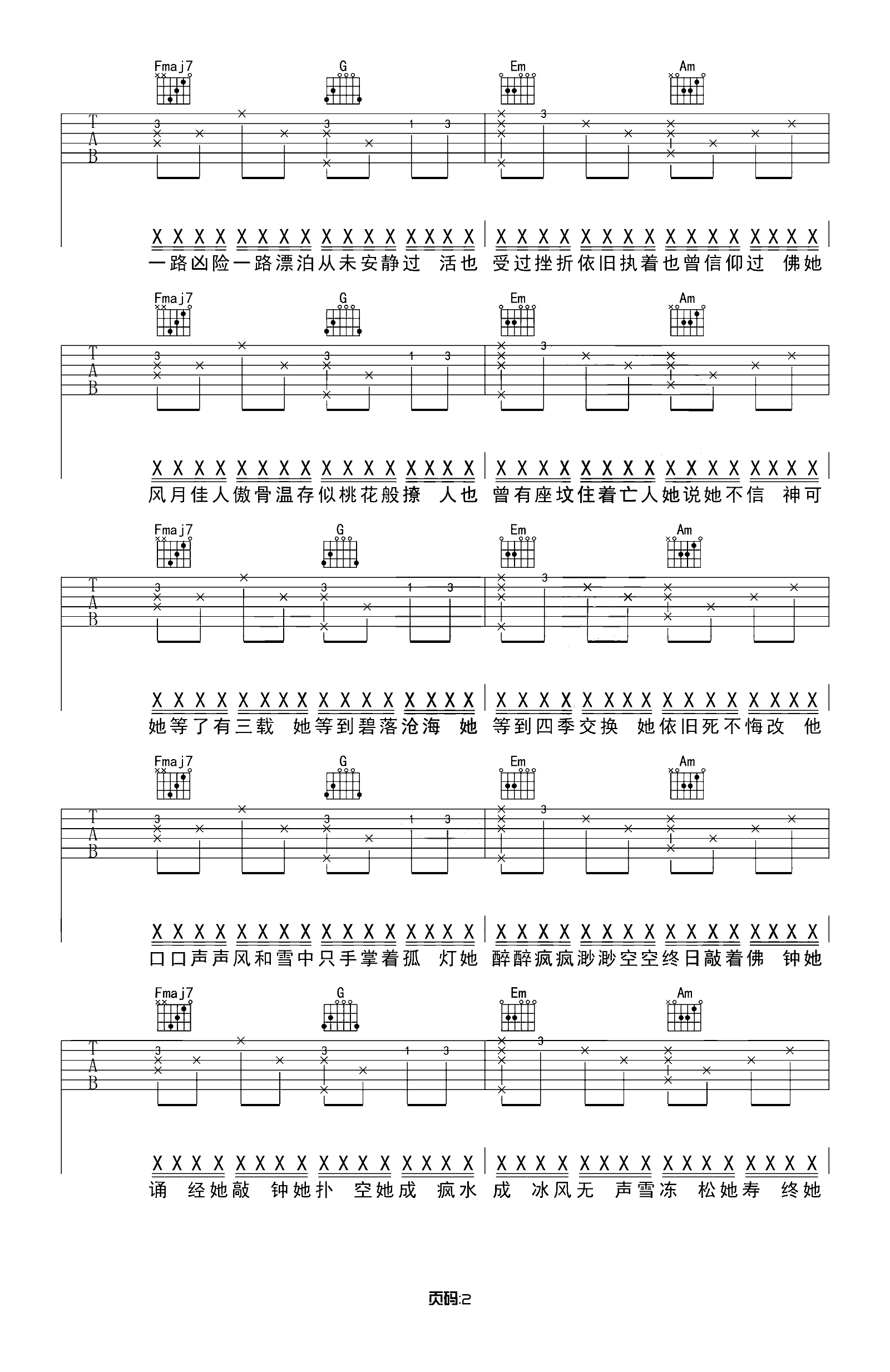 郭旭《不找了》吉他谱 C调高清弹唱谱