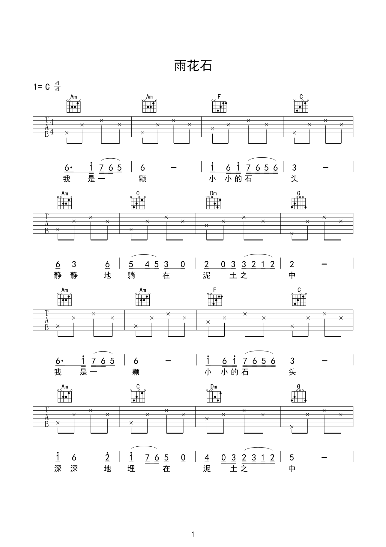 吉他谱 | 入门弹唱《雨花石》