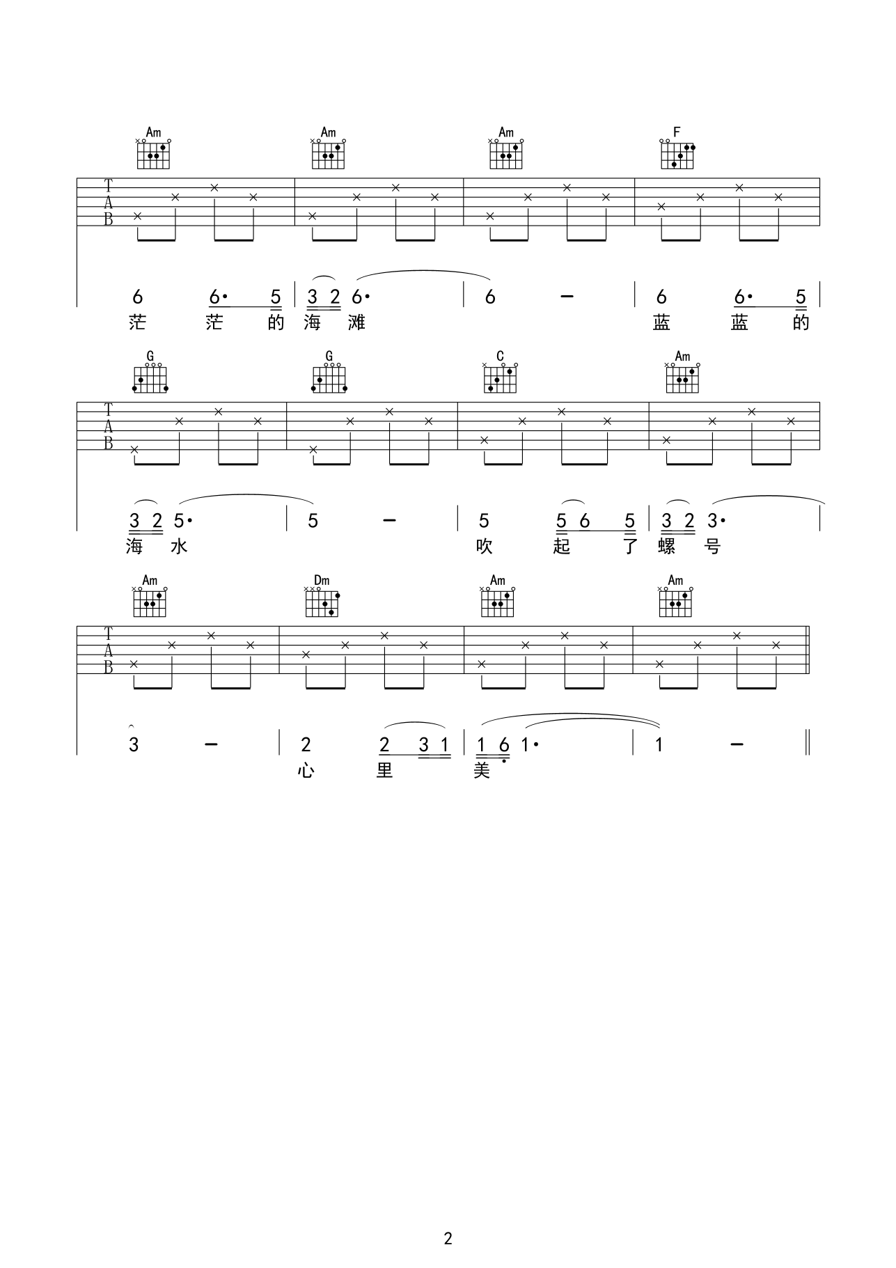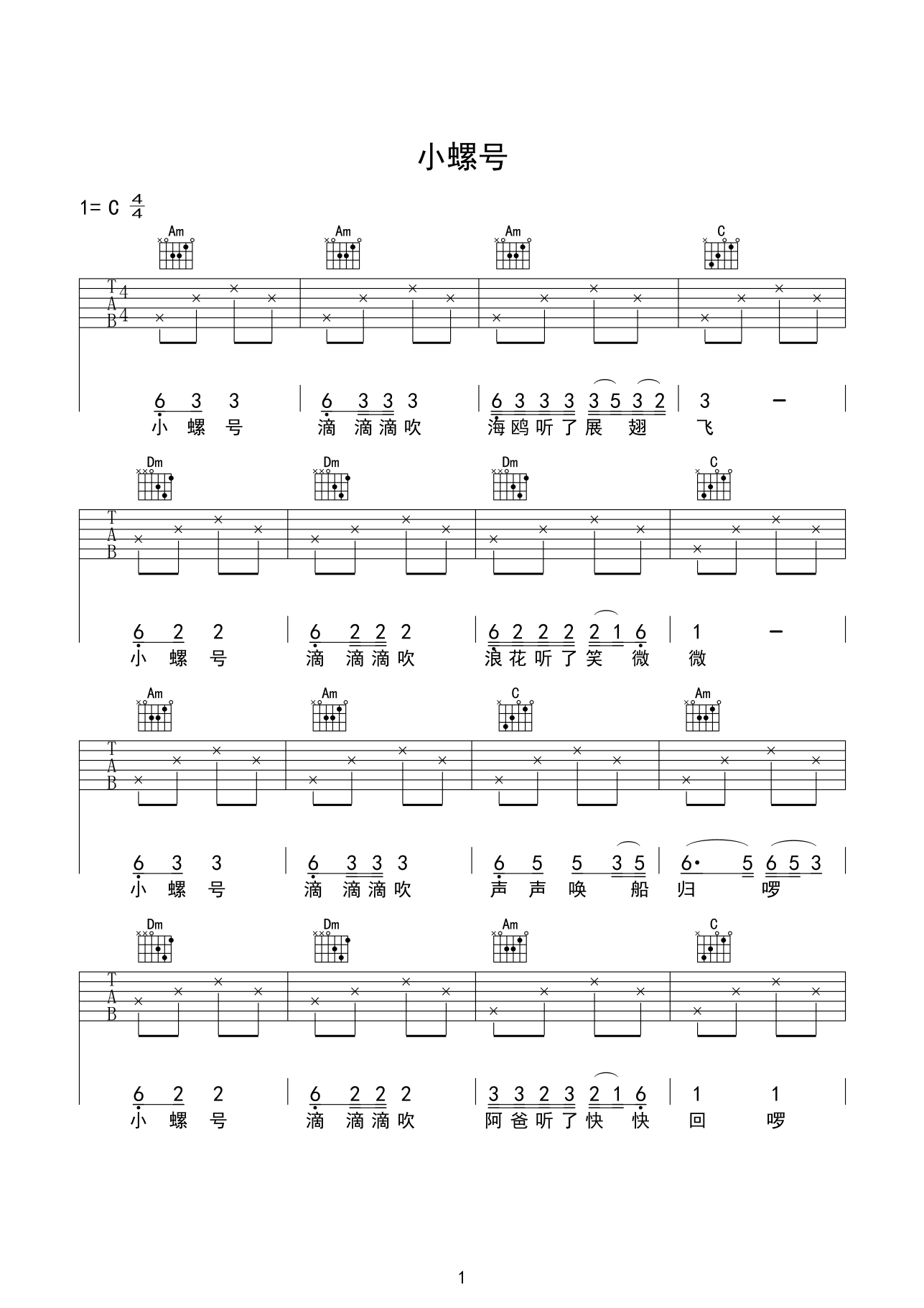 吉他谱 | 入门弹唱《小螺号》