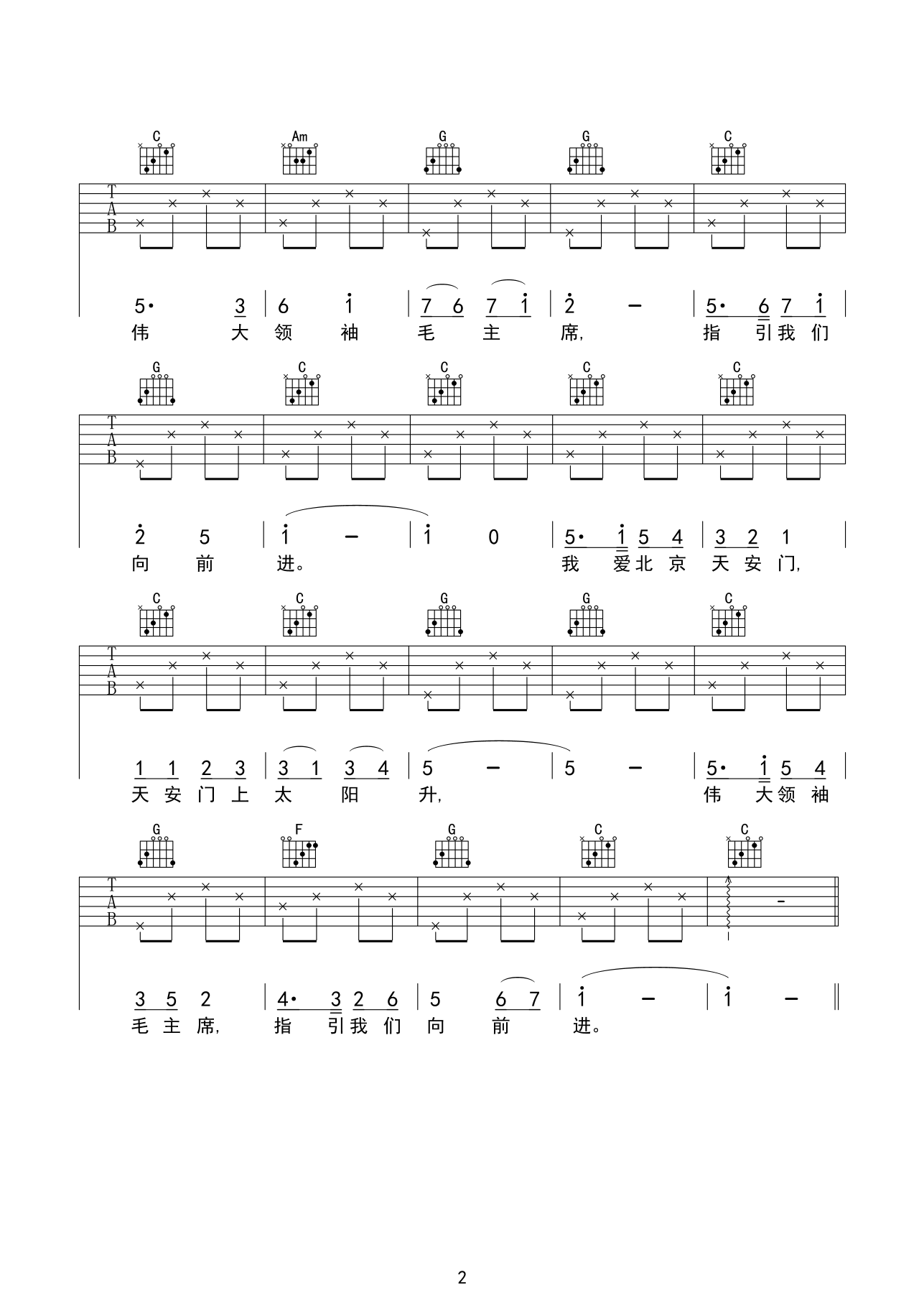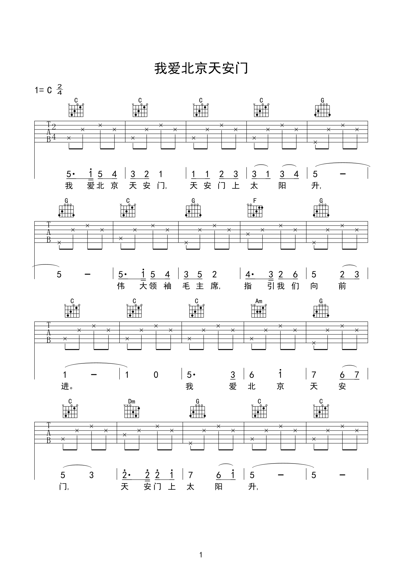 吉他谱 | 入门弹唱《我爱北京天安门》