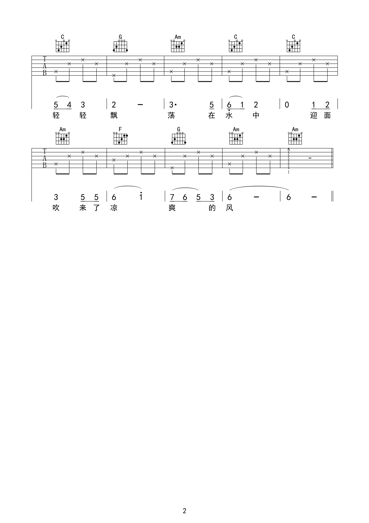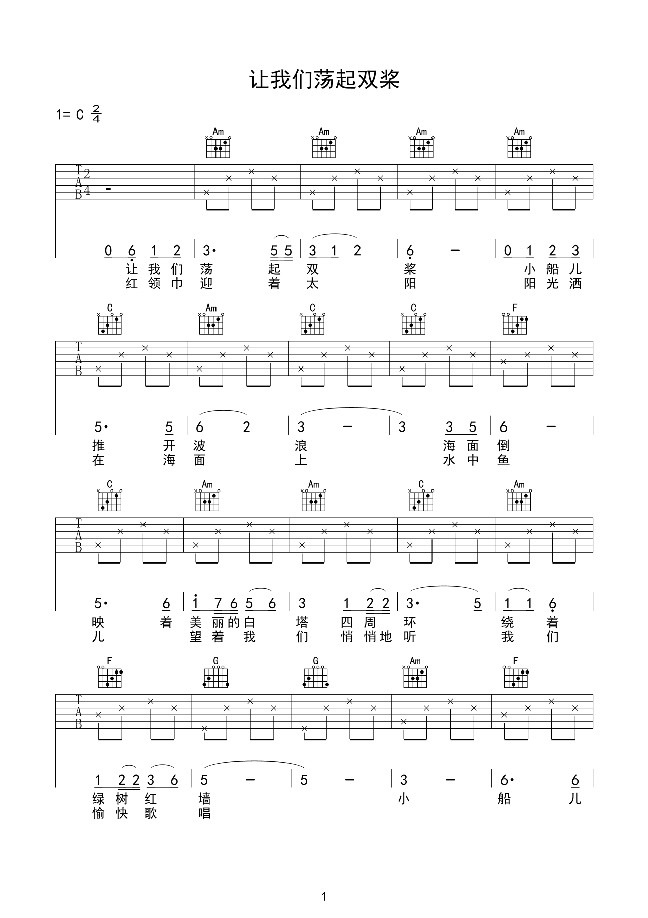 吉他谱 | 入门弹唱《让我们荡起双桨》