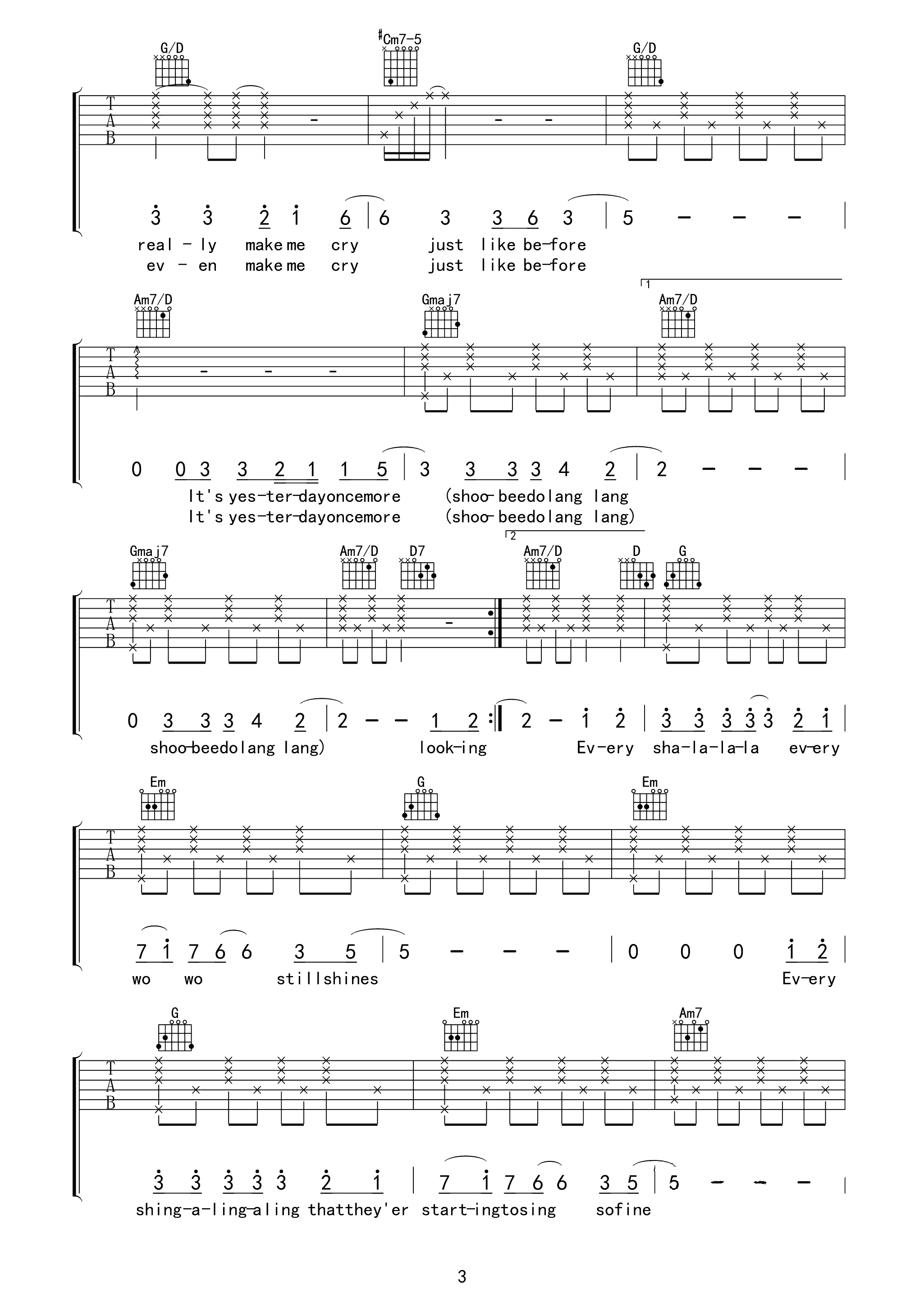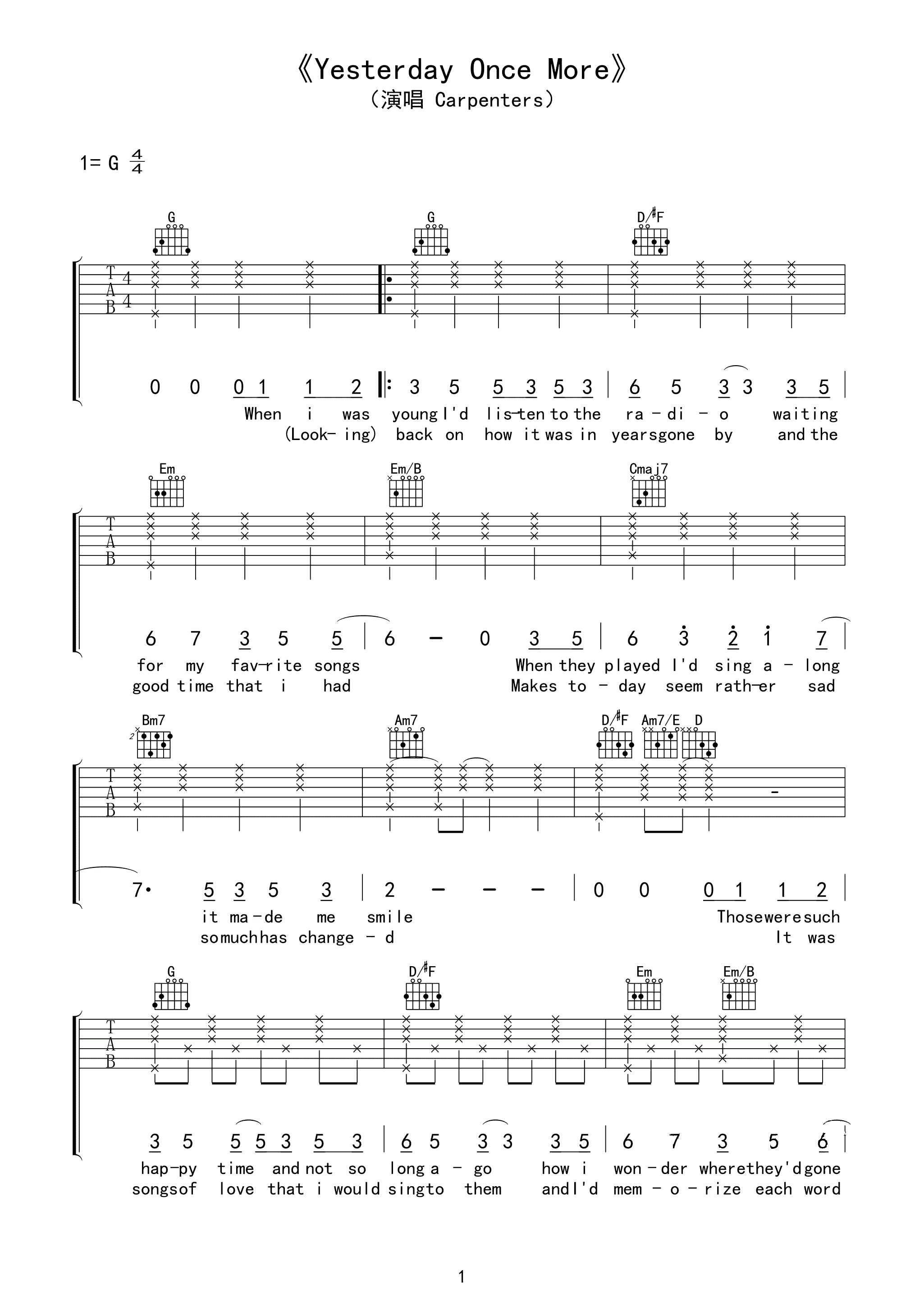 吉他谱 | 热门弹唱《昨日重现》