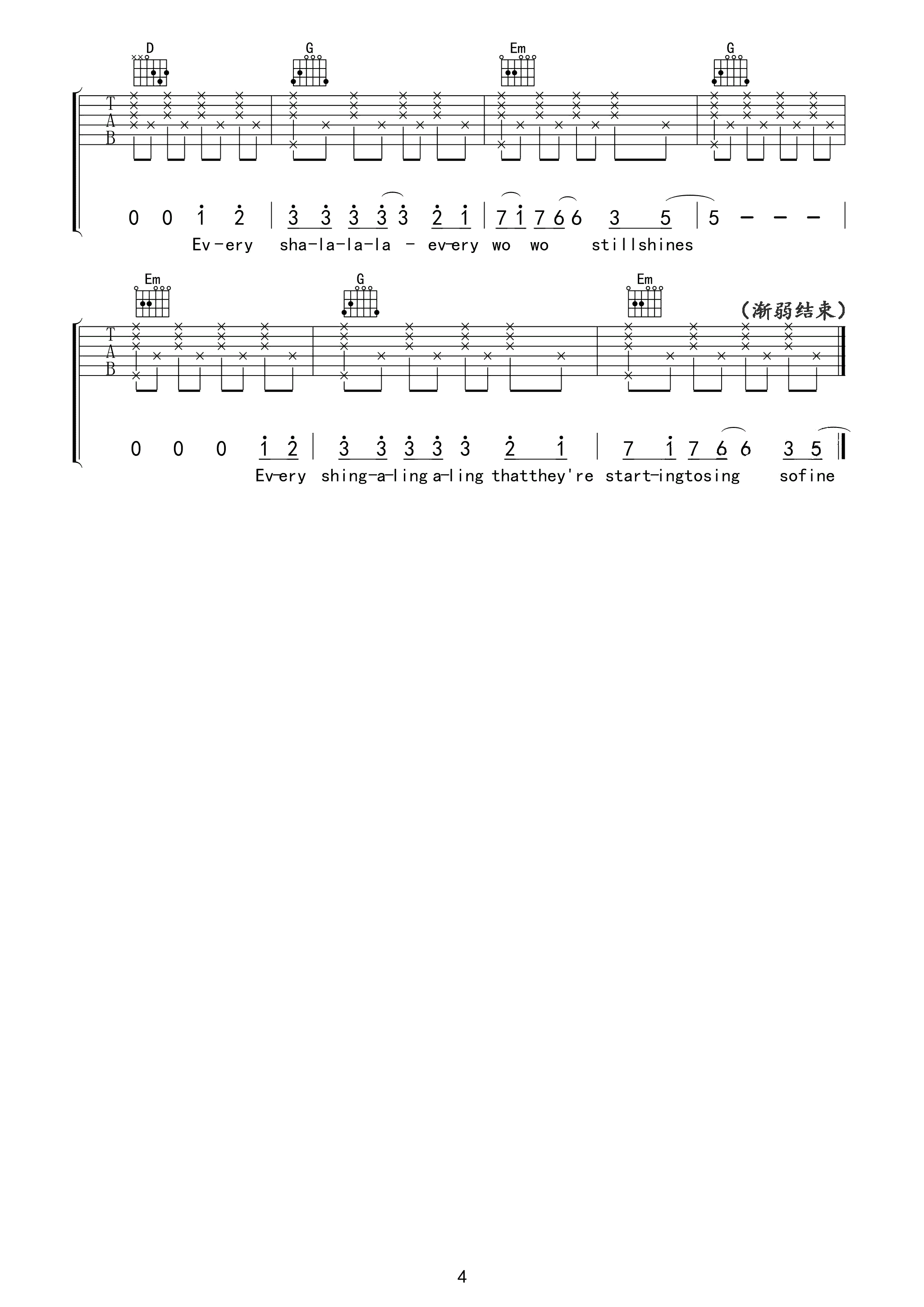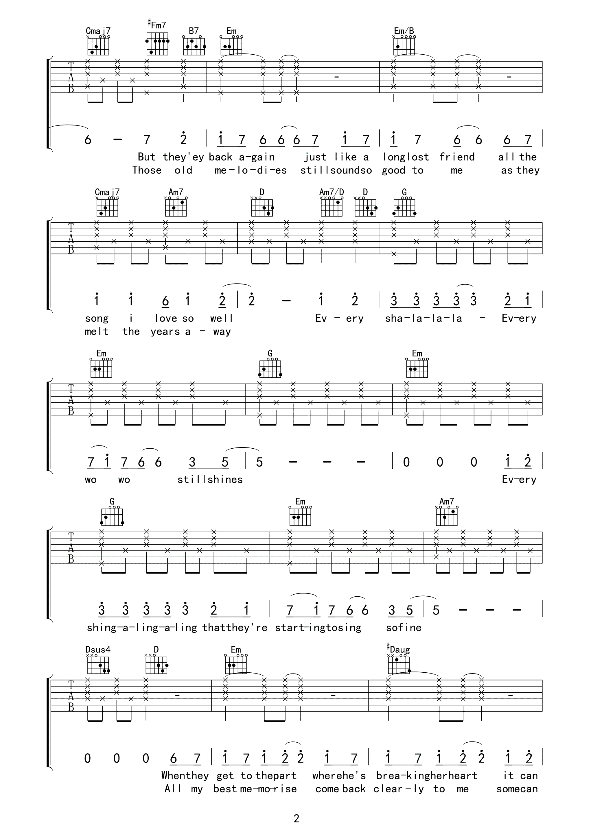 恒星 简谱版 吉他谱