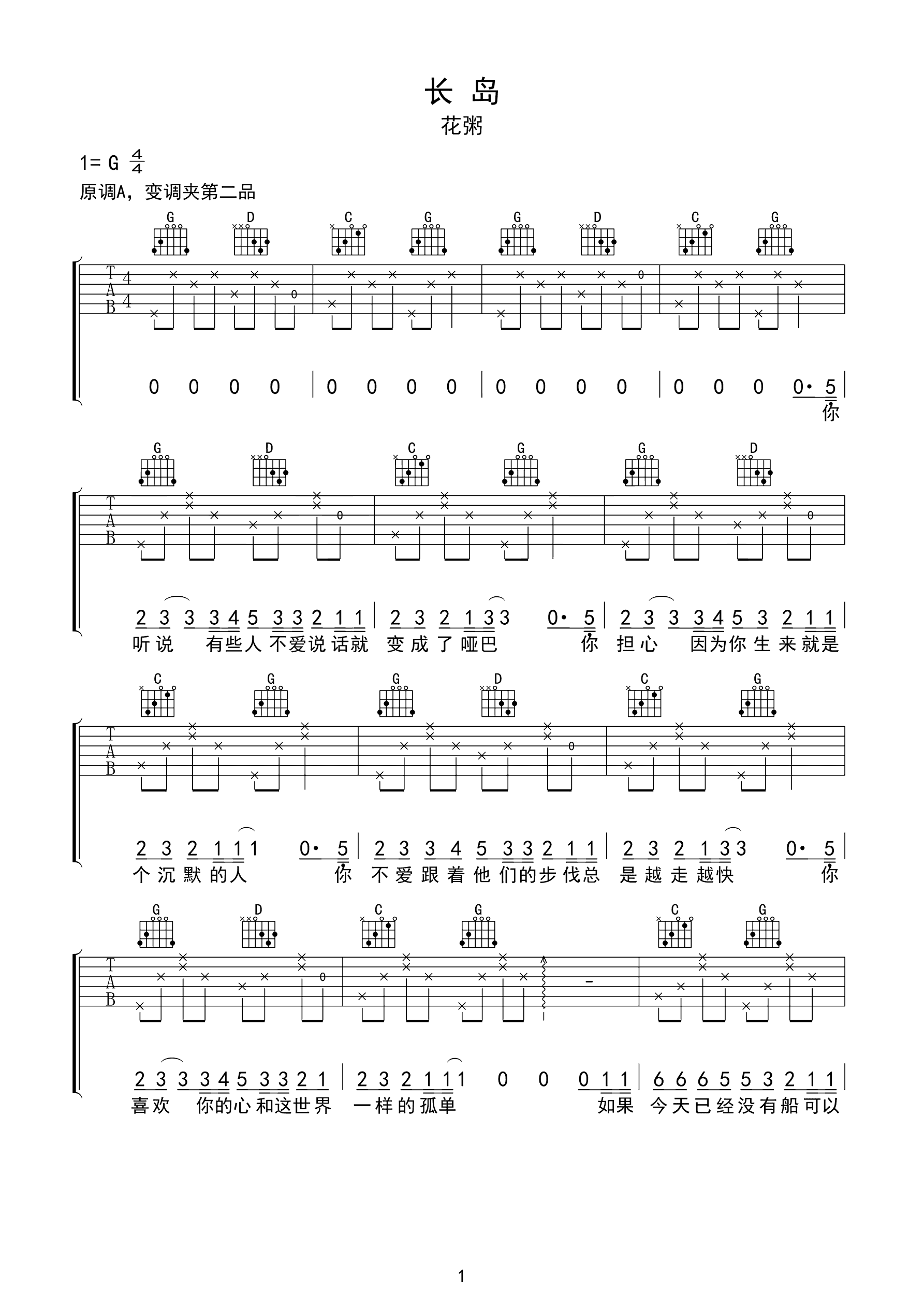 吉他谱 | 热门弹唱《长岛》