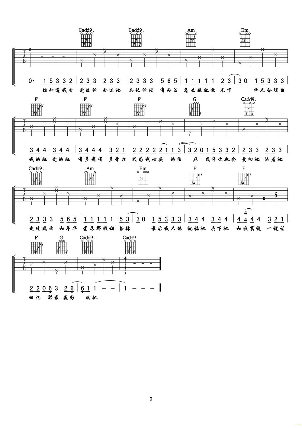 八月最后一天吉他谱