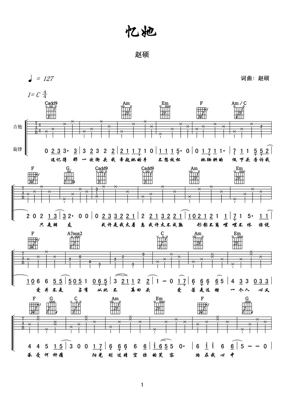 吉他谱 | 热门弹唱《忆她》