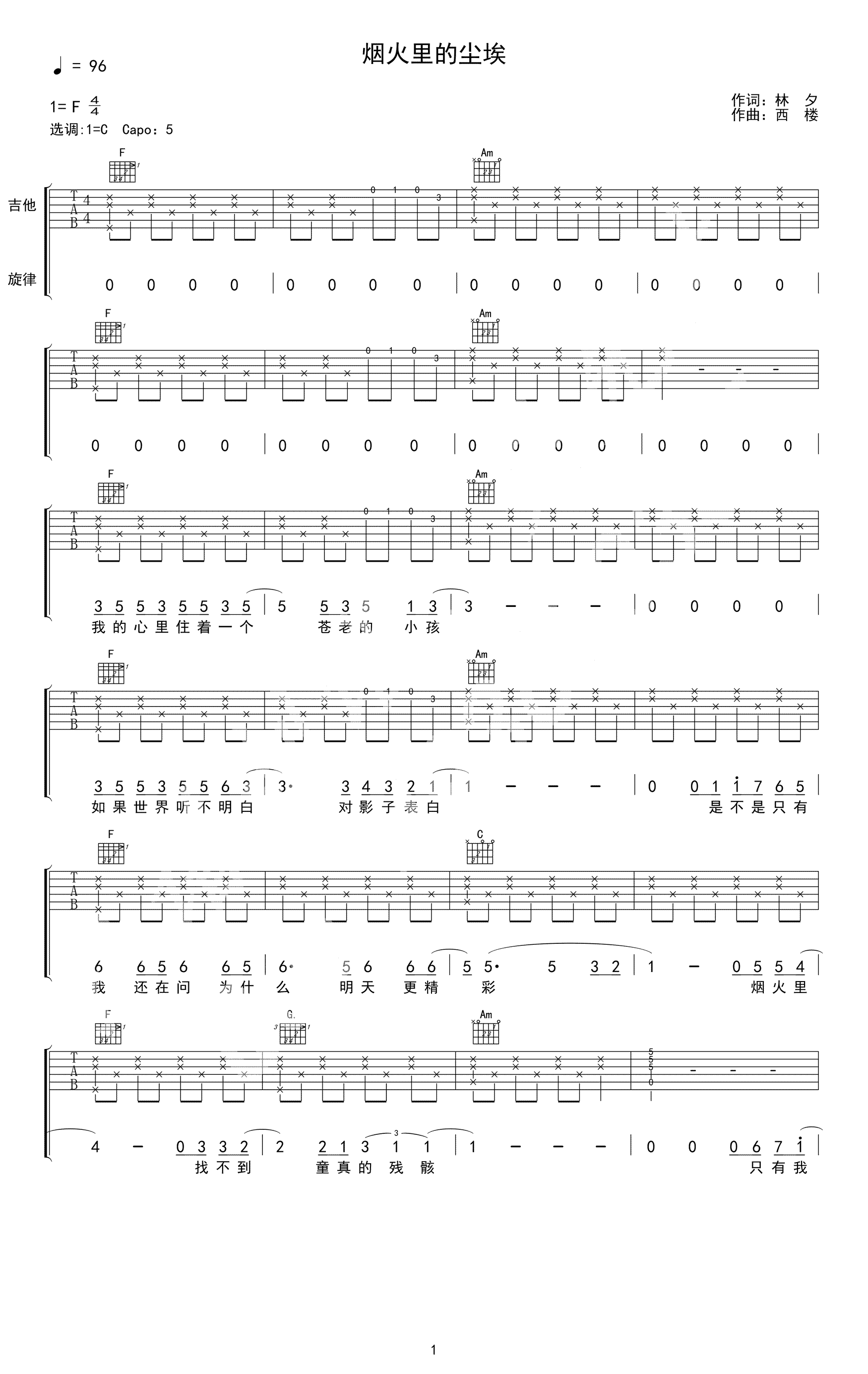 吉他谱 | 热门弹唱《烟火里的尘埃》