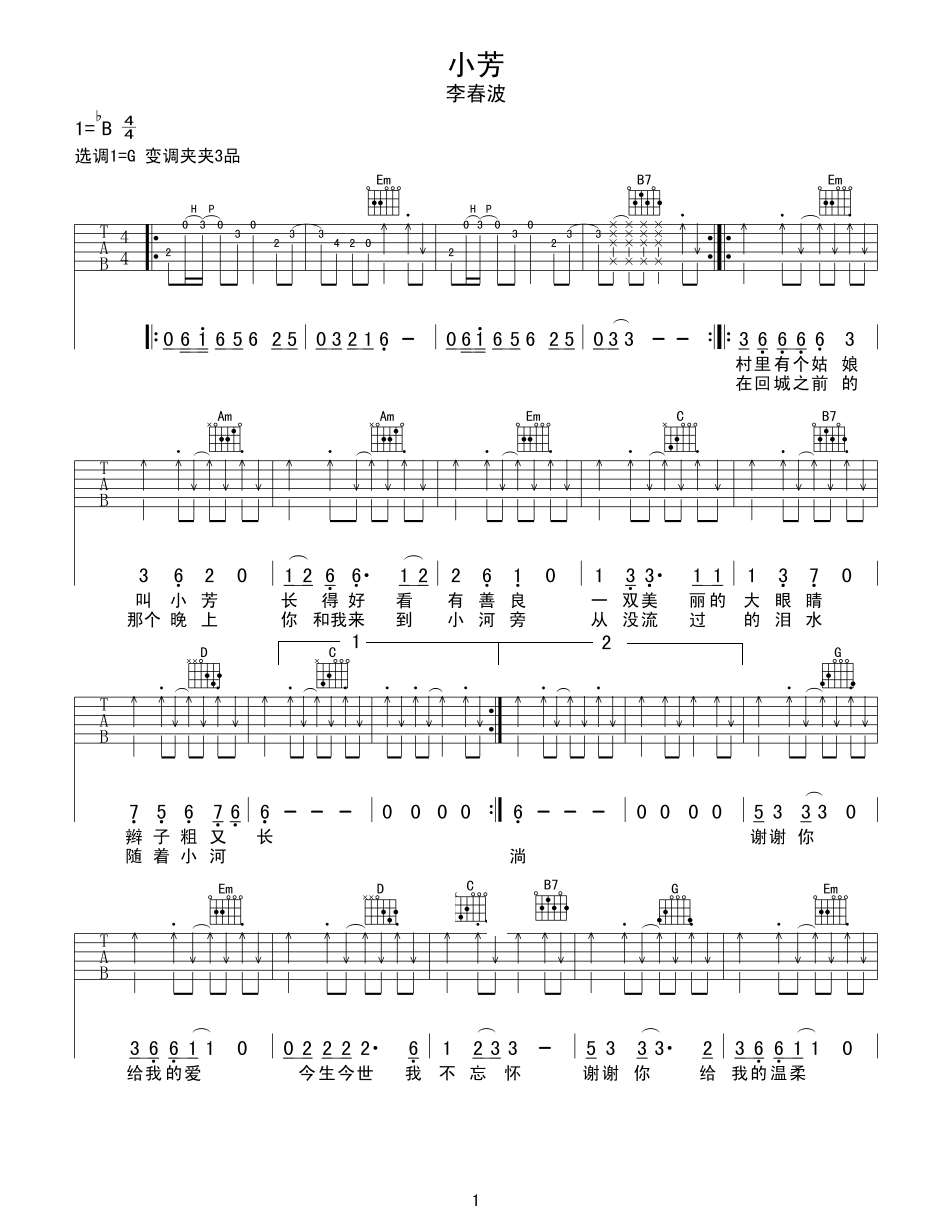吉他谱 | 热门弹唱《小芳》