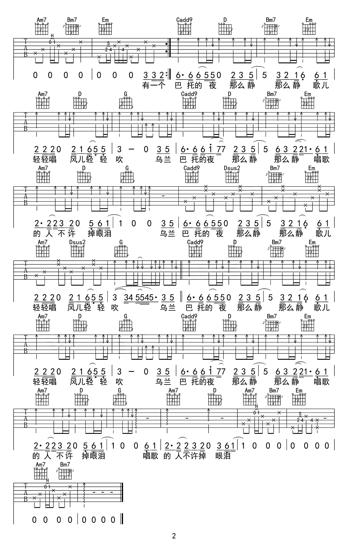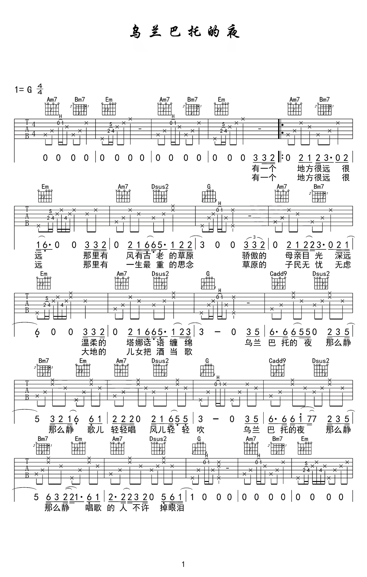 吉他谱 | 热门弹唱《乌兰巴托的夜》