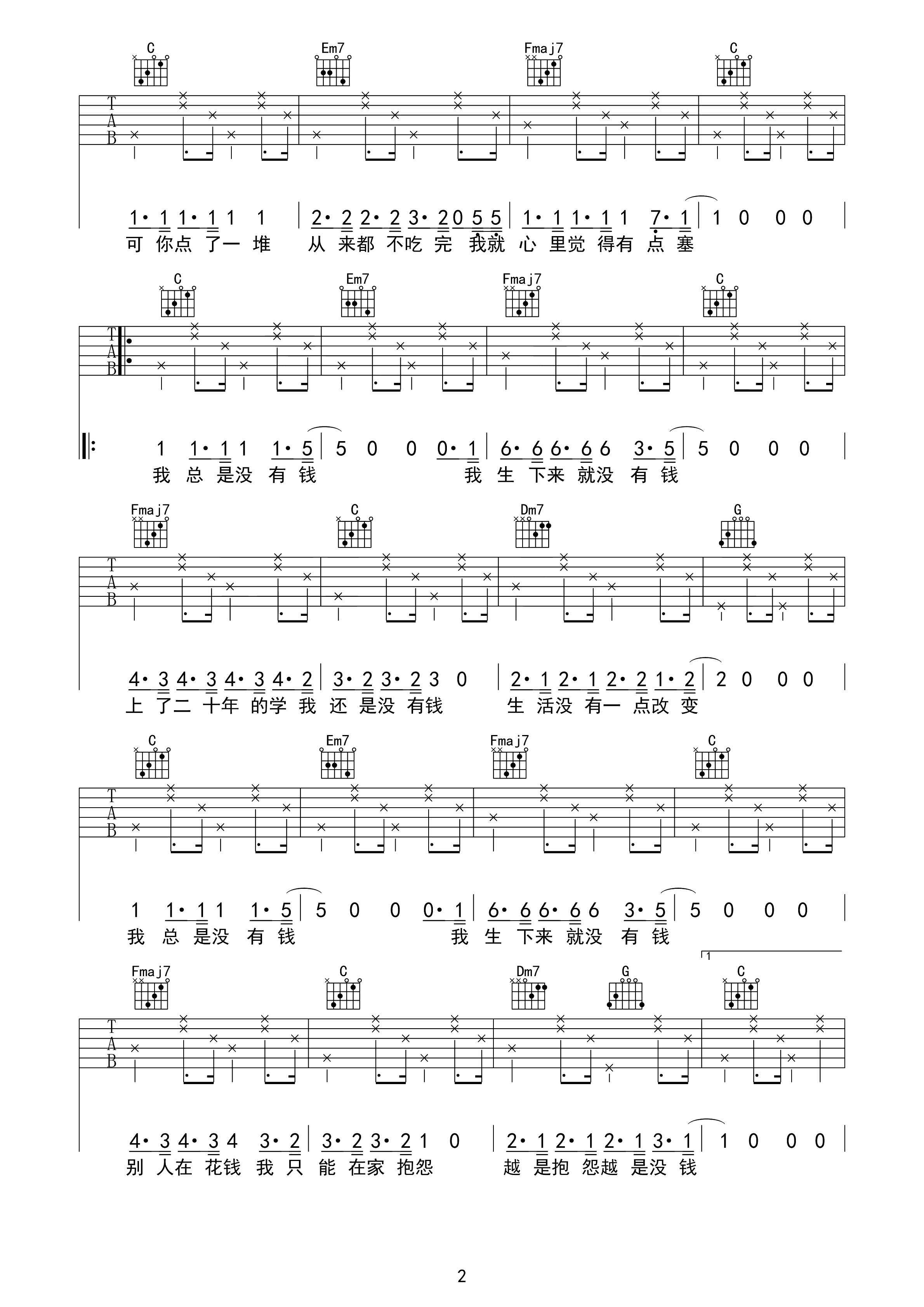 厚颜无耻吉他谱_曲肖冰_C调弹唱谱_高清