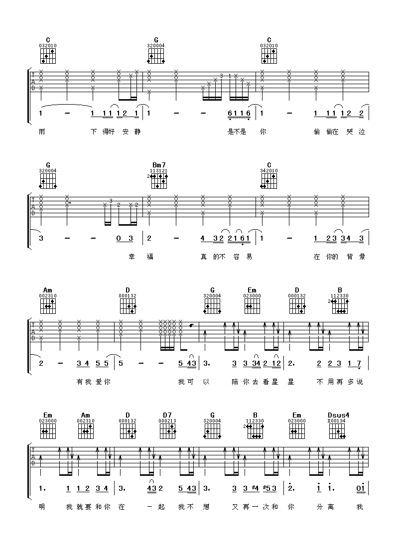 告白吉他谱_沈以诚/王欣宇_G调_弹唱六