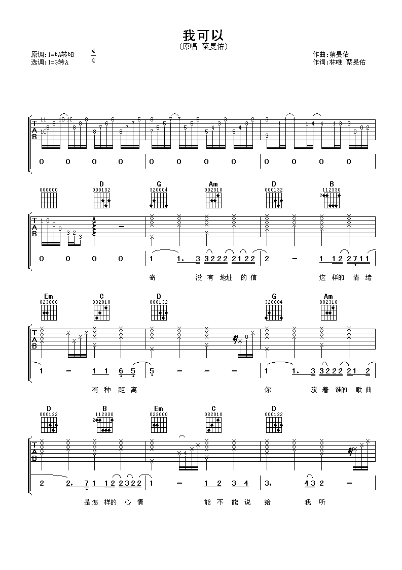 吉他谱 | 热门弹唱《我可以》