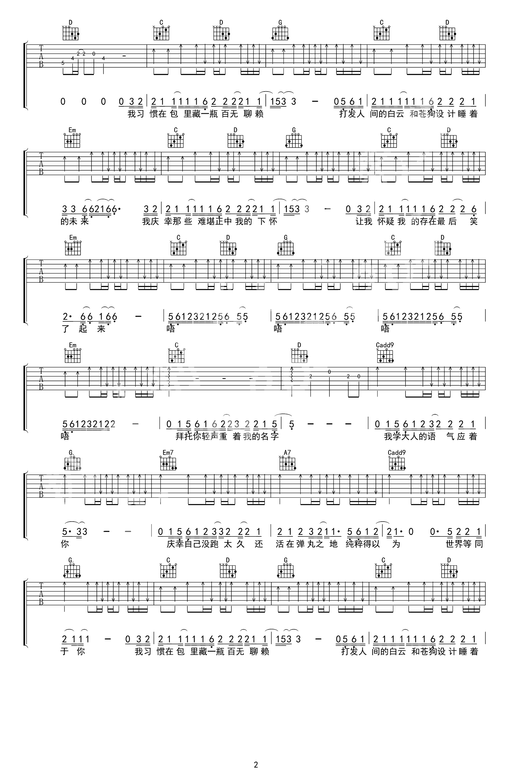 你的酒馆对我打了烊吉他谱_C调弹唱谱_
