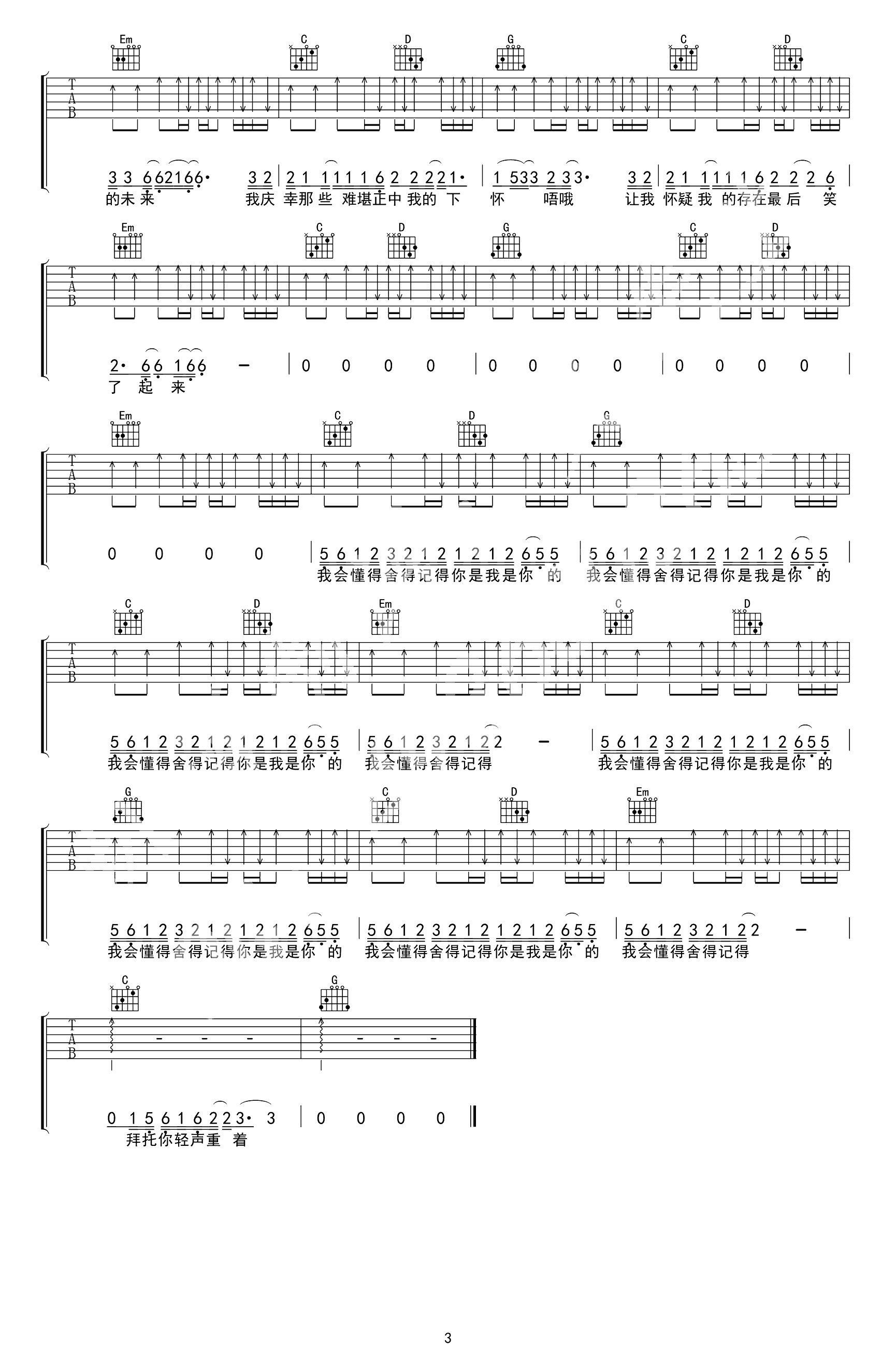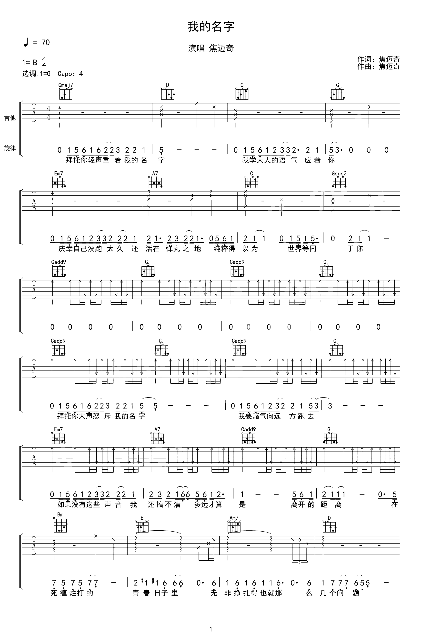 吉他谱 | 热门弹唱《我的名字》