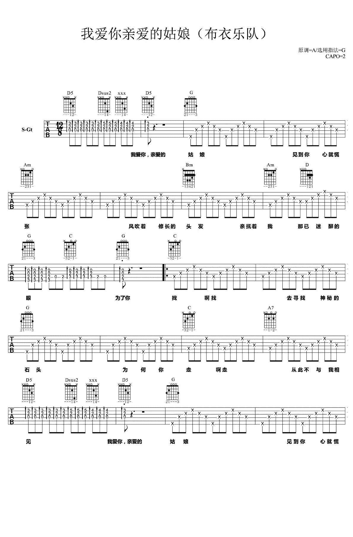 吉他谱 | 热门弹唱《我爱你亲爱的姑娘》