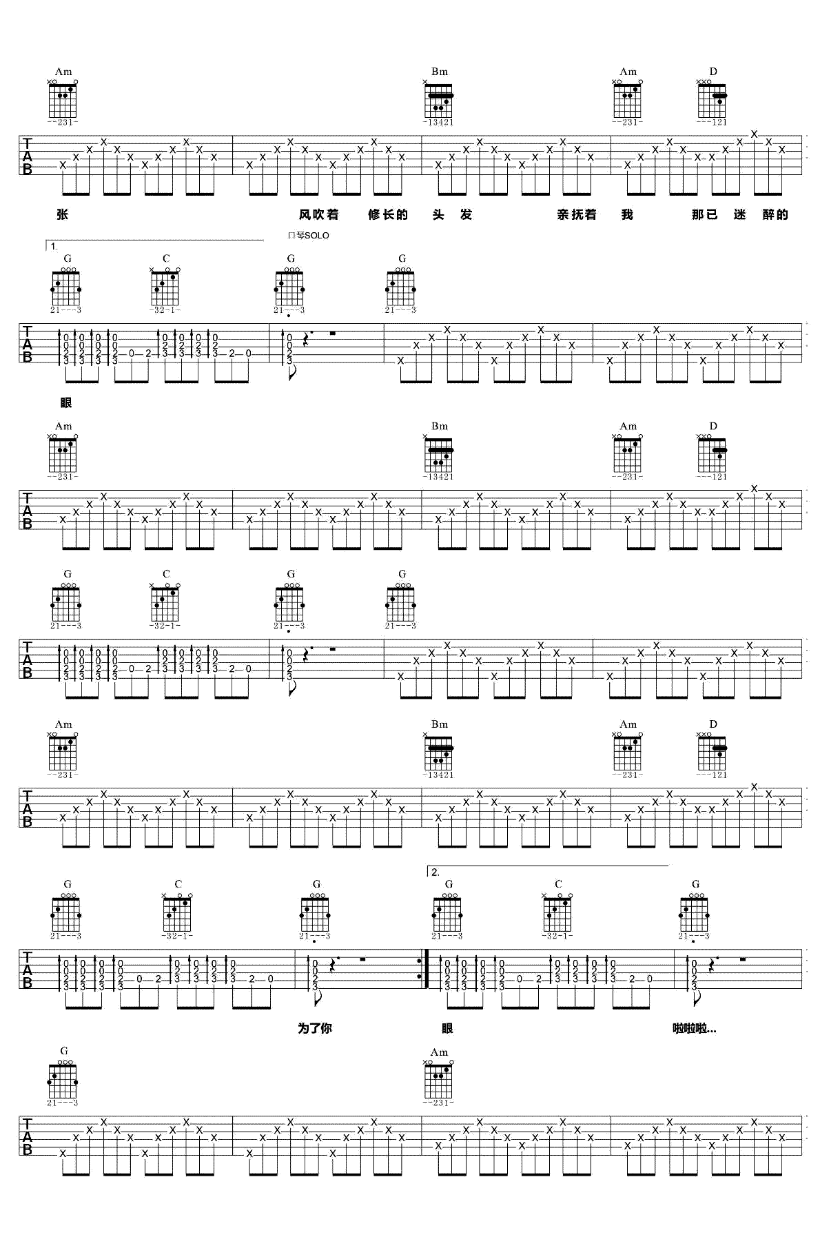 甜甜的 带和弦独奏版吉他谱