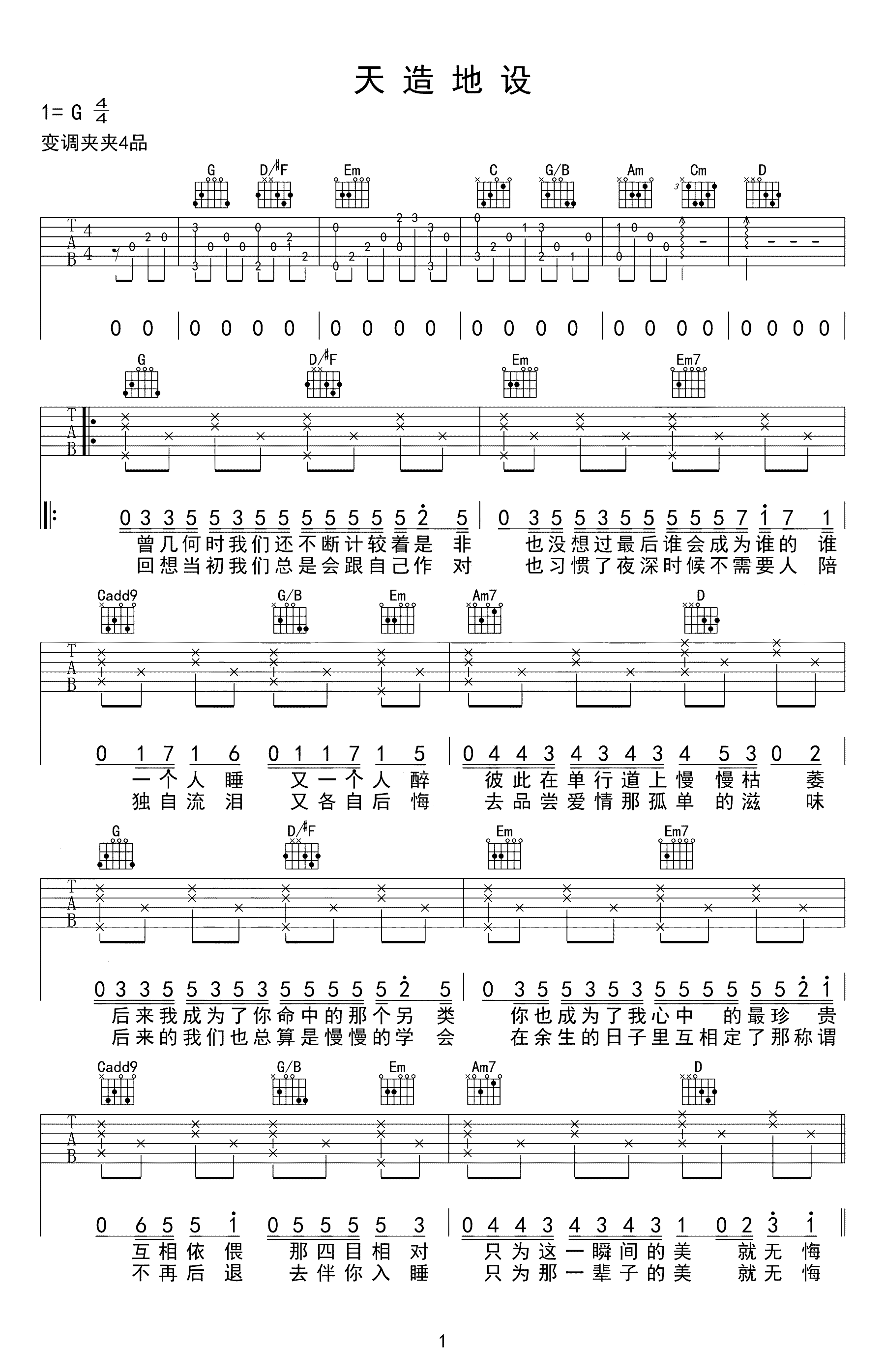 只是太爱你吉他谱_张敬轩_C调简单版_高