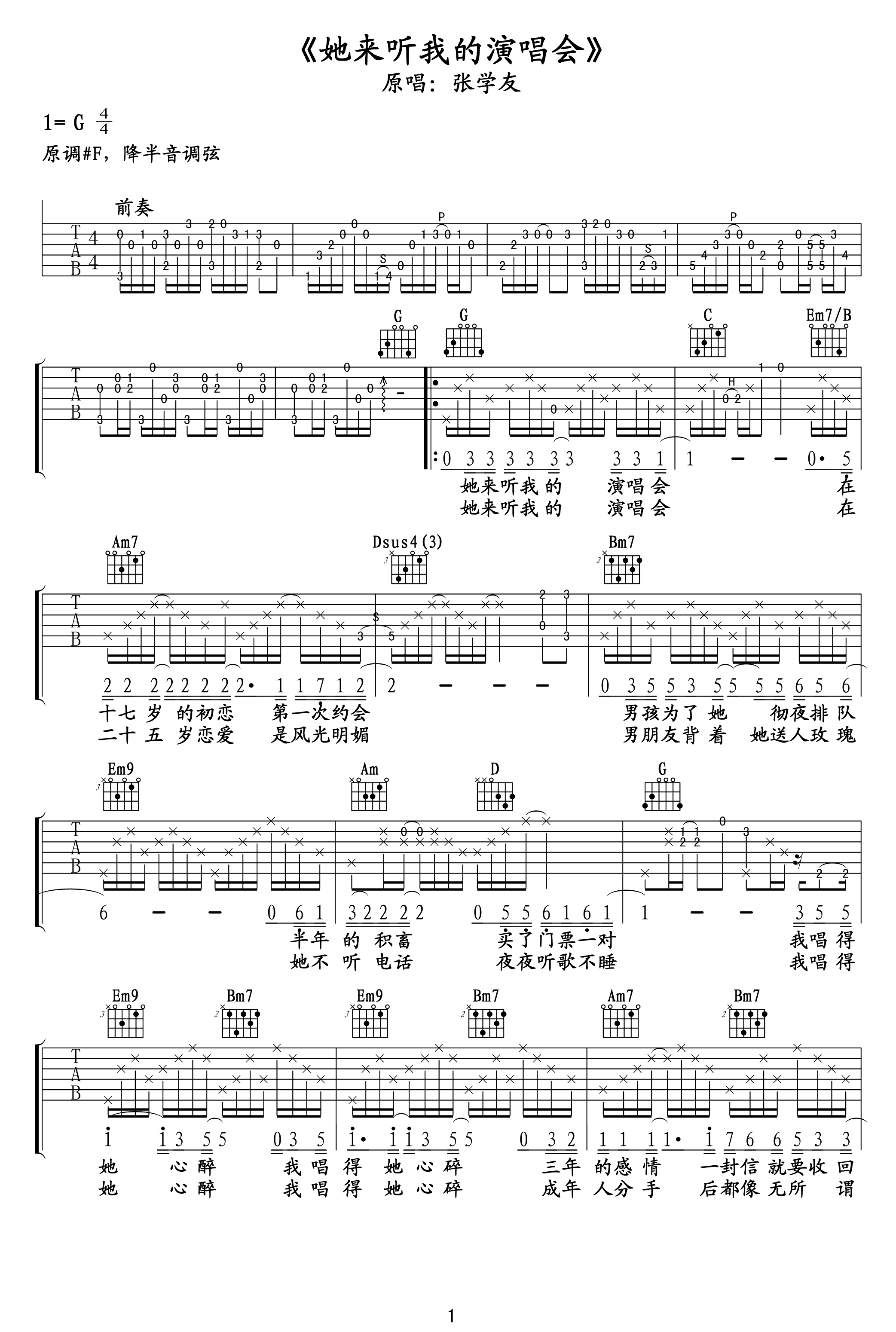 吉他谱 | 热门弹唱《她来听我的演唱会》