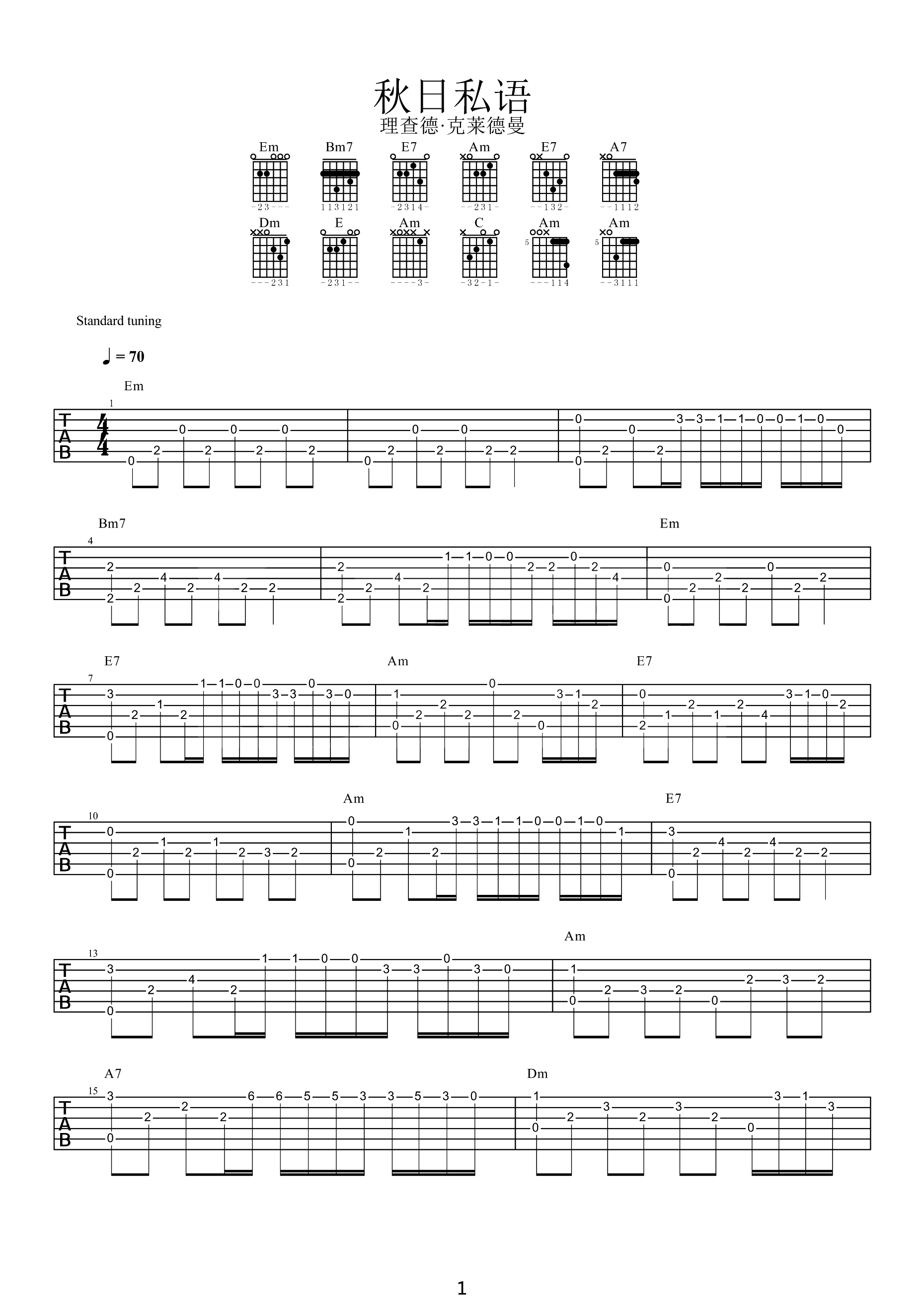 吉他谱 | 经典指弹《秋日私语》