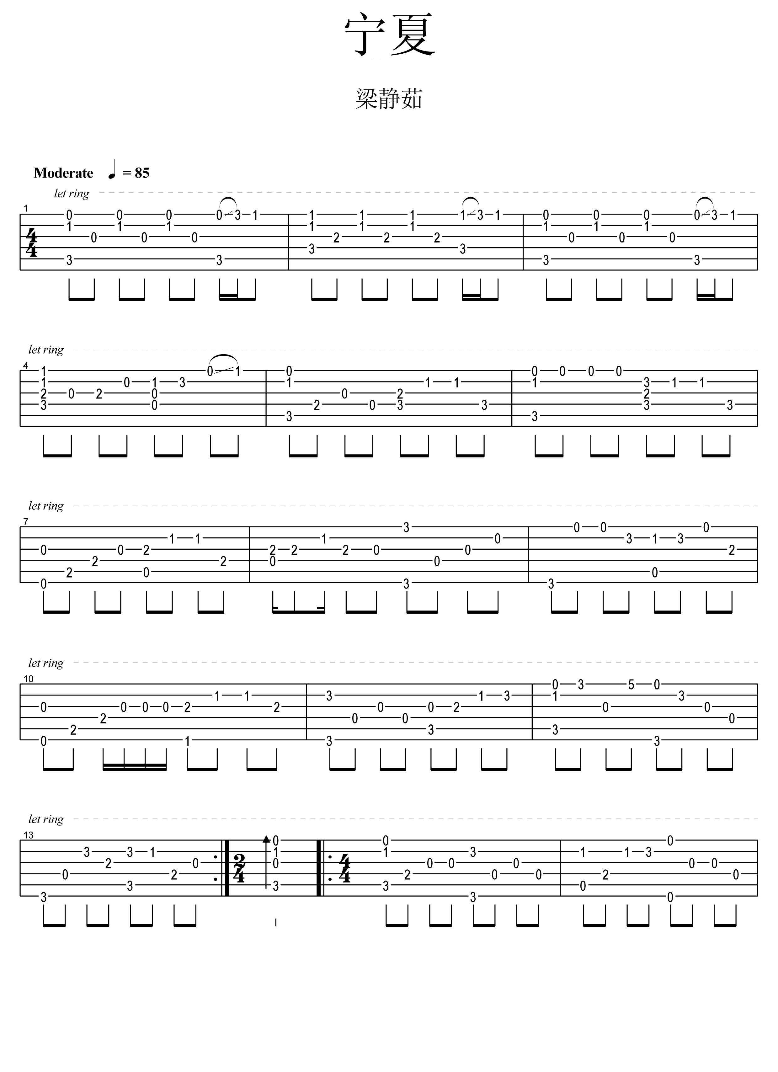 吉他谱 | 经典指弹《宁夏》