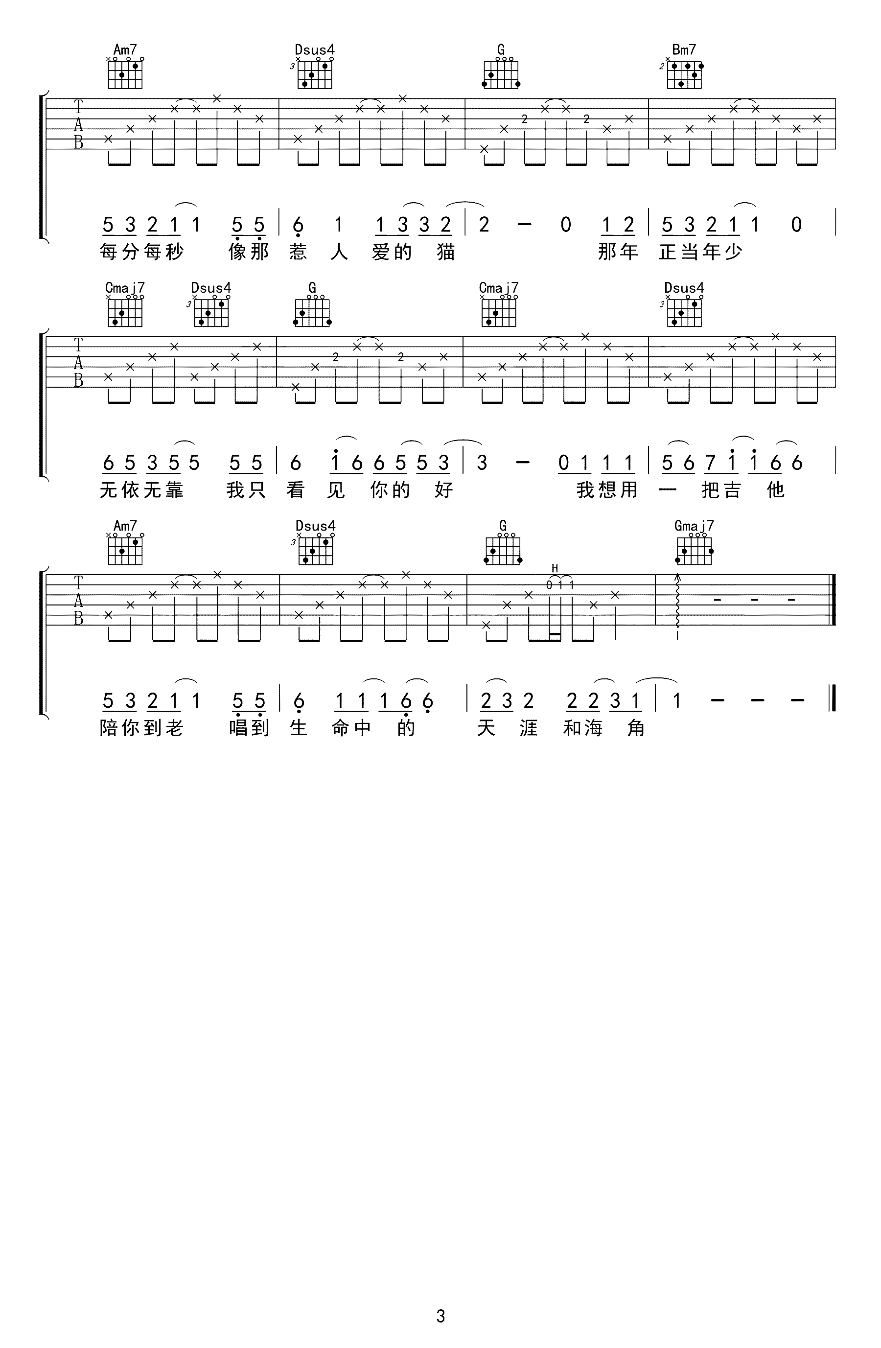 吉他谱 | 入门弹唱《在人间》