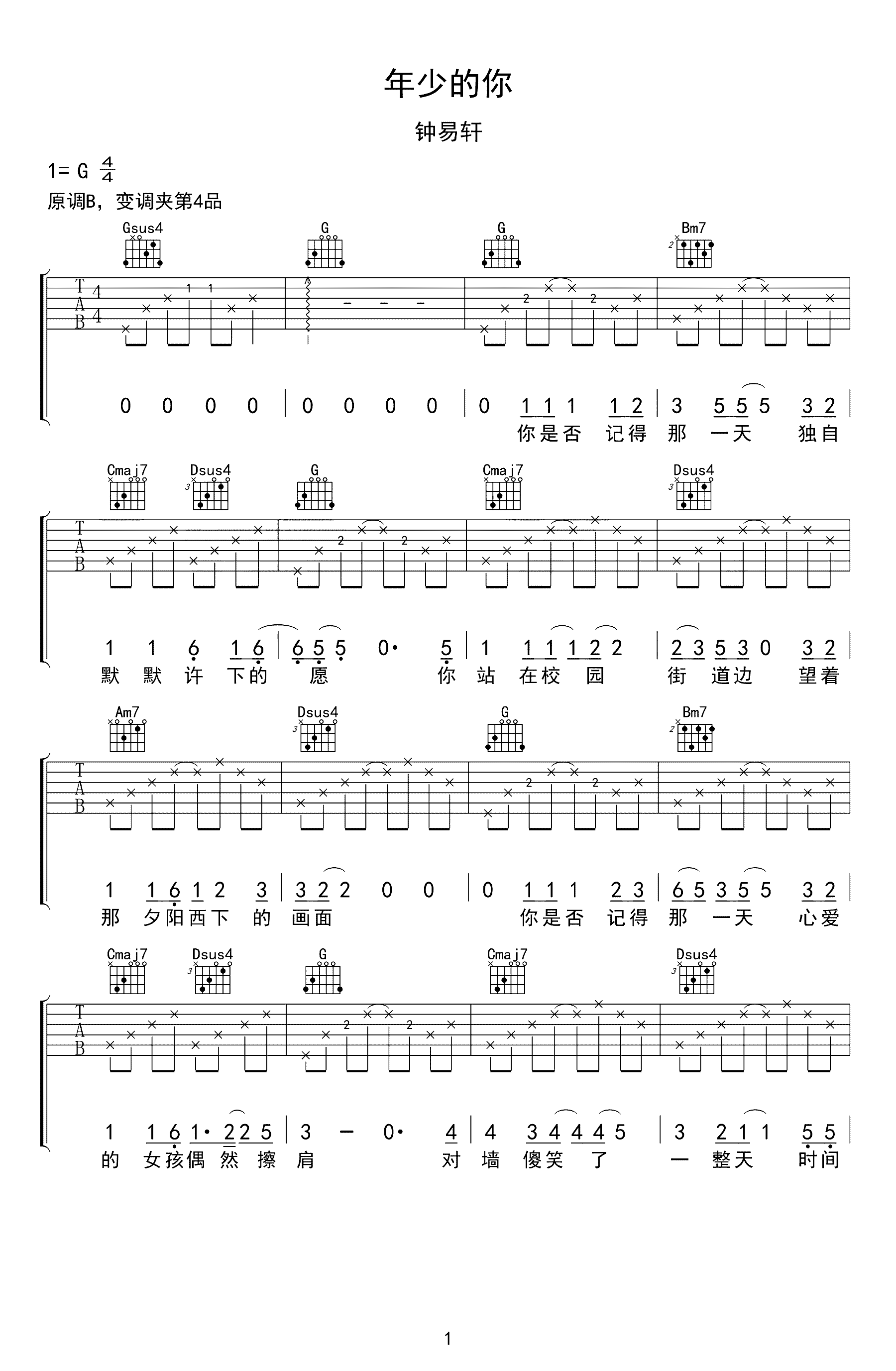 吉他谱 | 热门弹唱《年少的你》