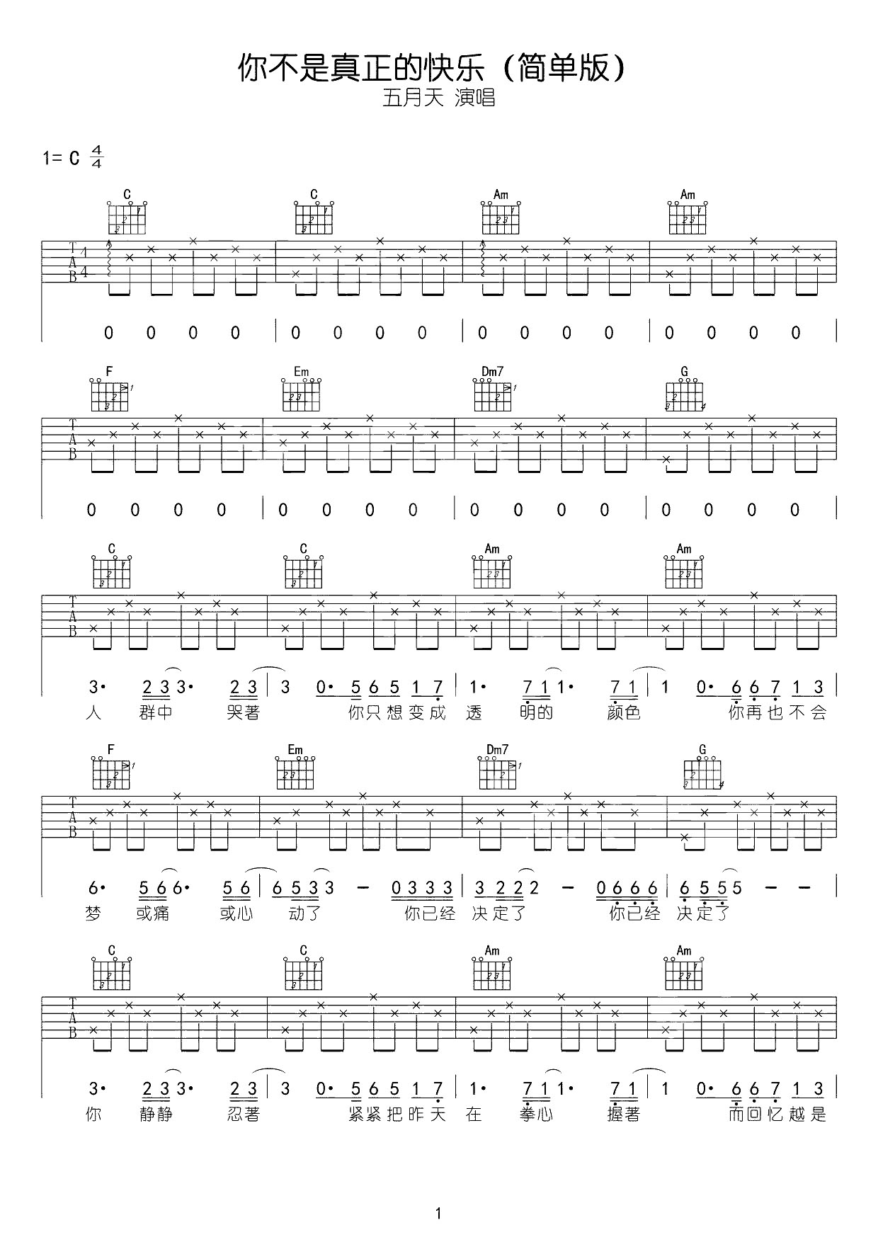 吉他谱 | 热门弹唱《你不是真正的快乐》