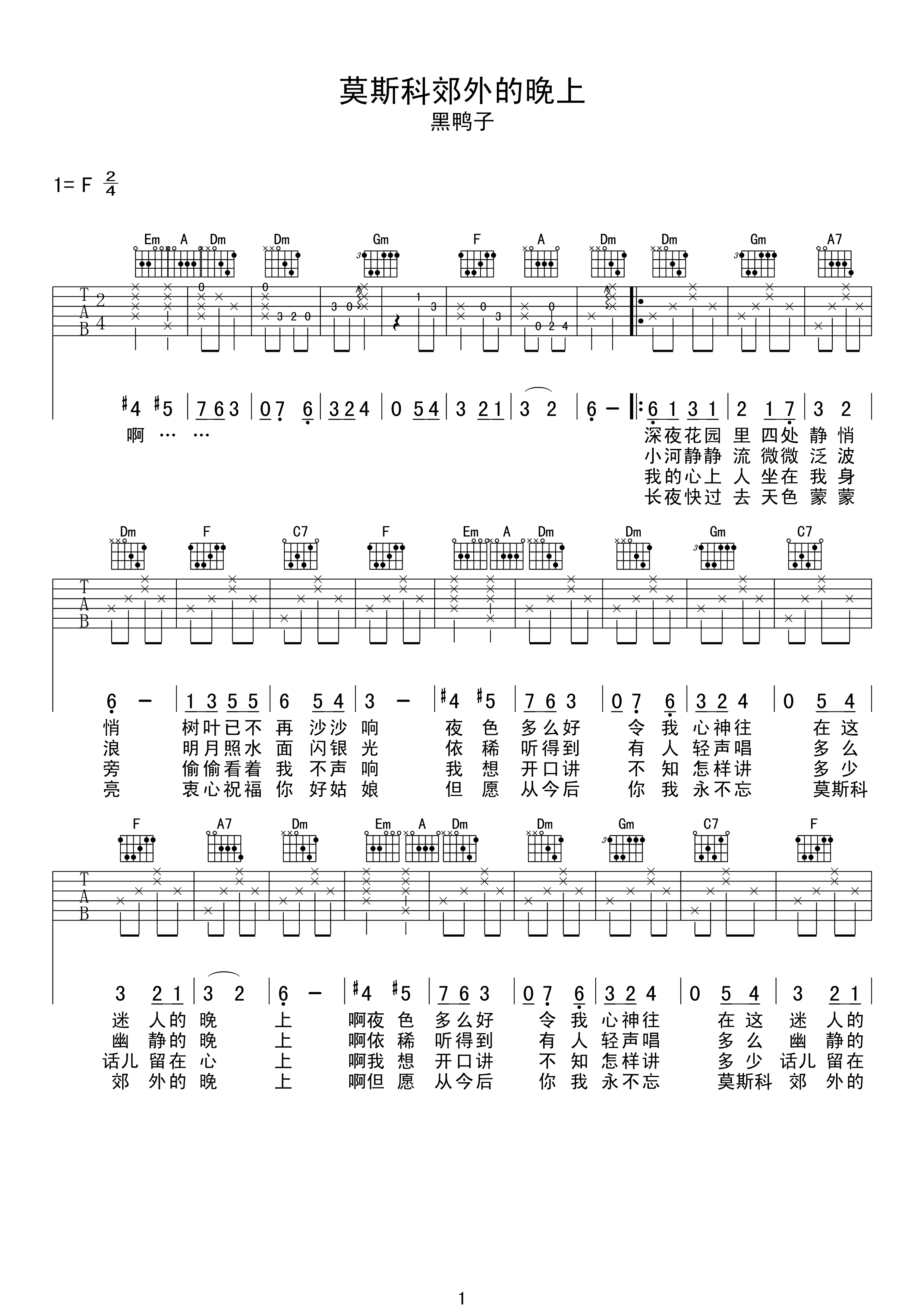 吉他谱 | 热门弹唱《莫斯科郊外的晚上》