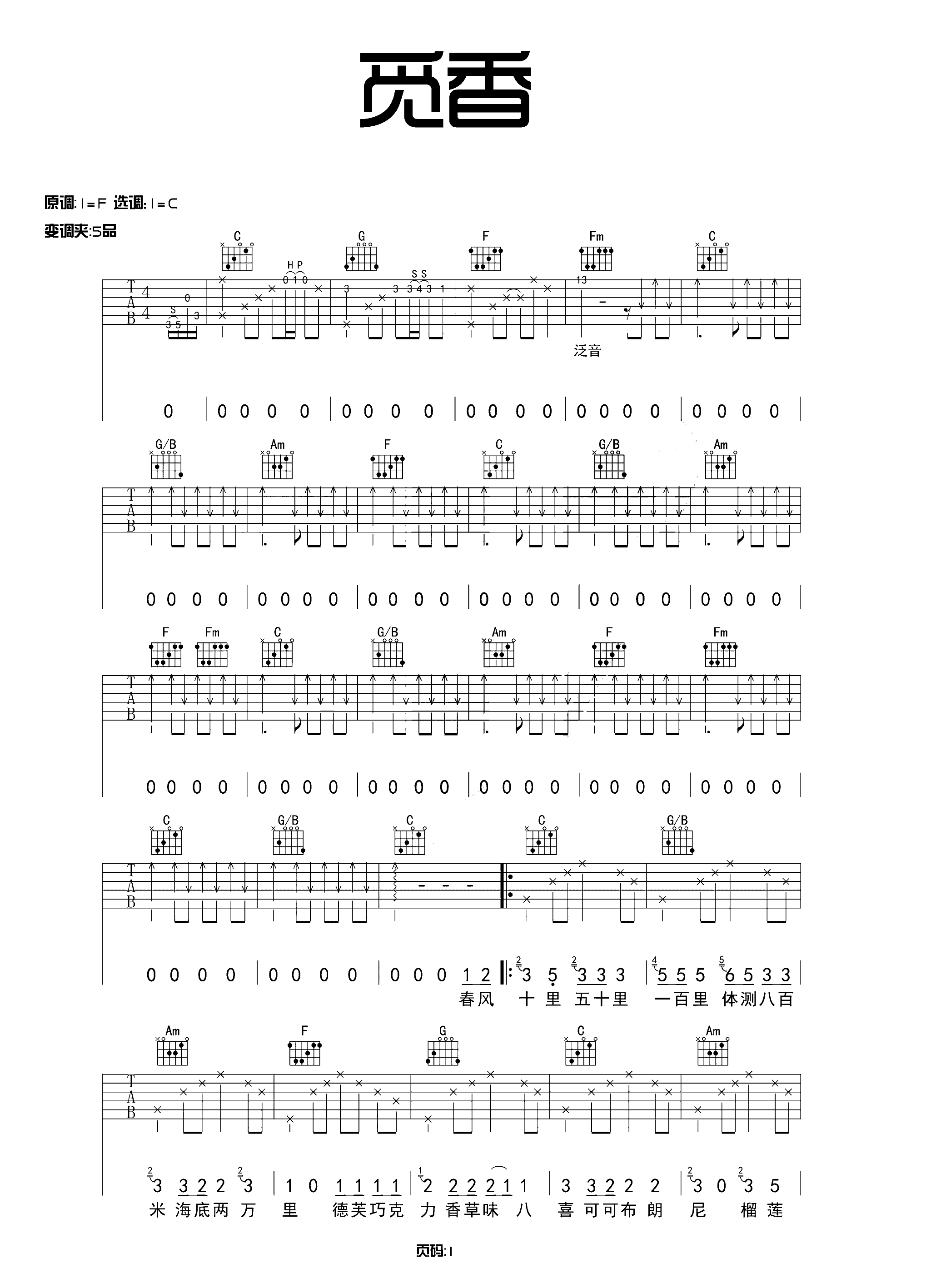 吉他谱 | 热门弹唱《觅香》
