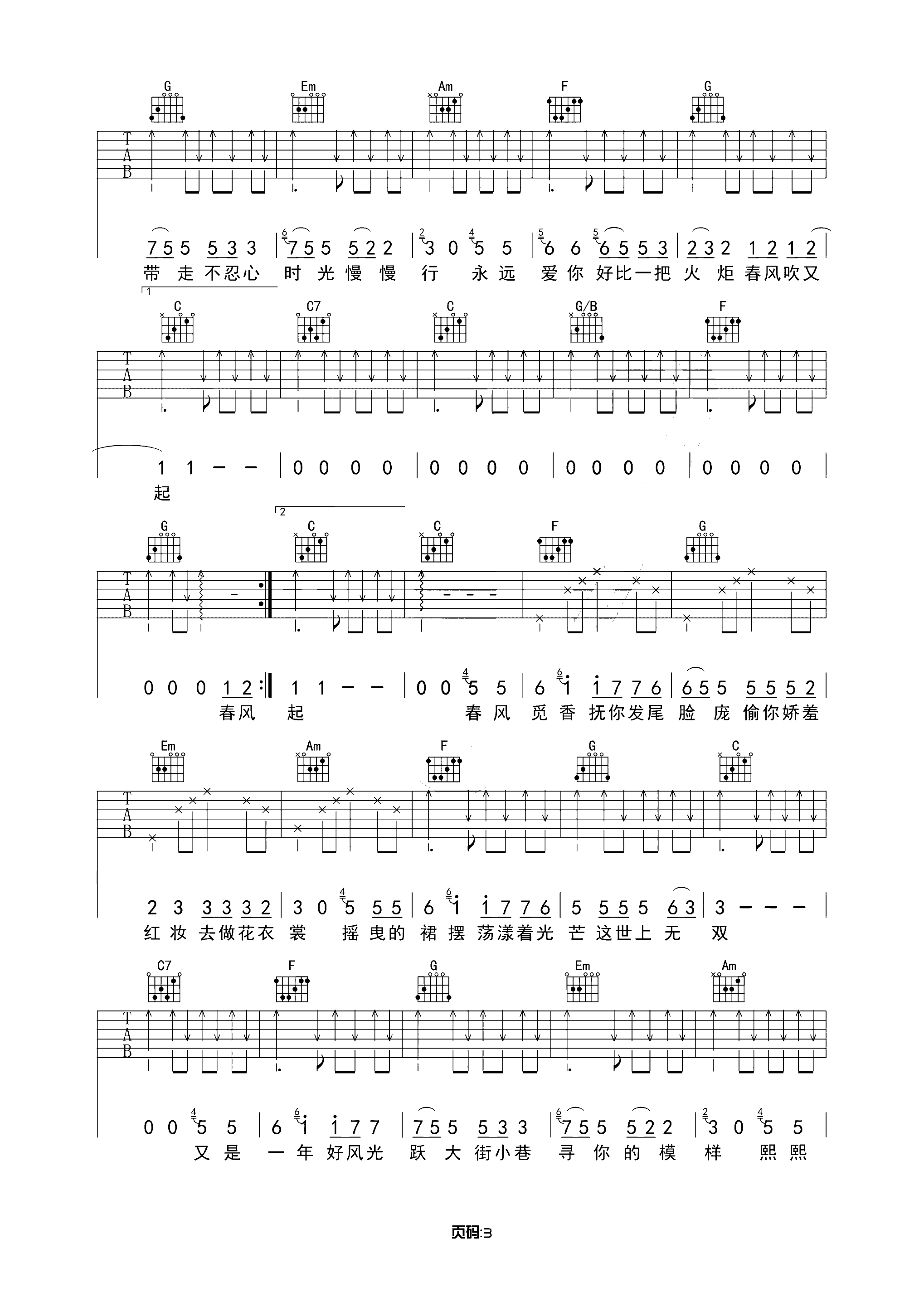 爱你不是两三天吉他谱