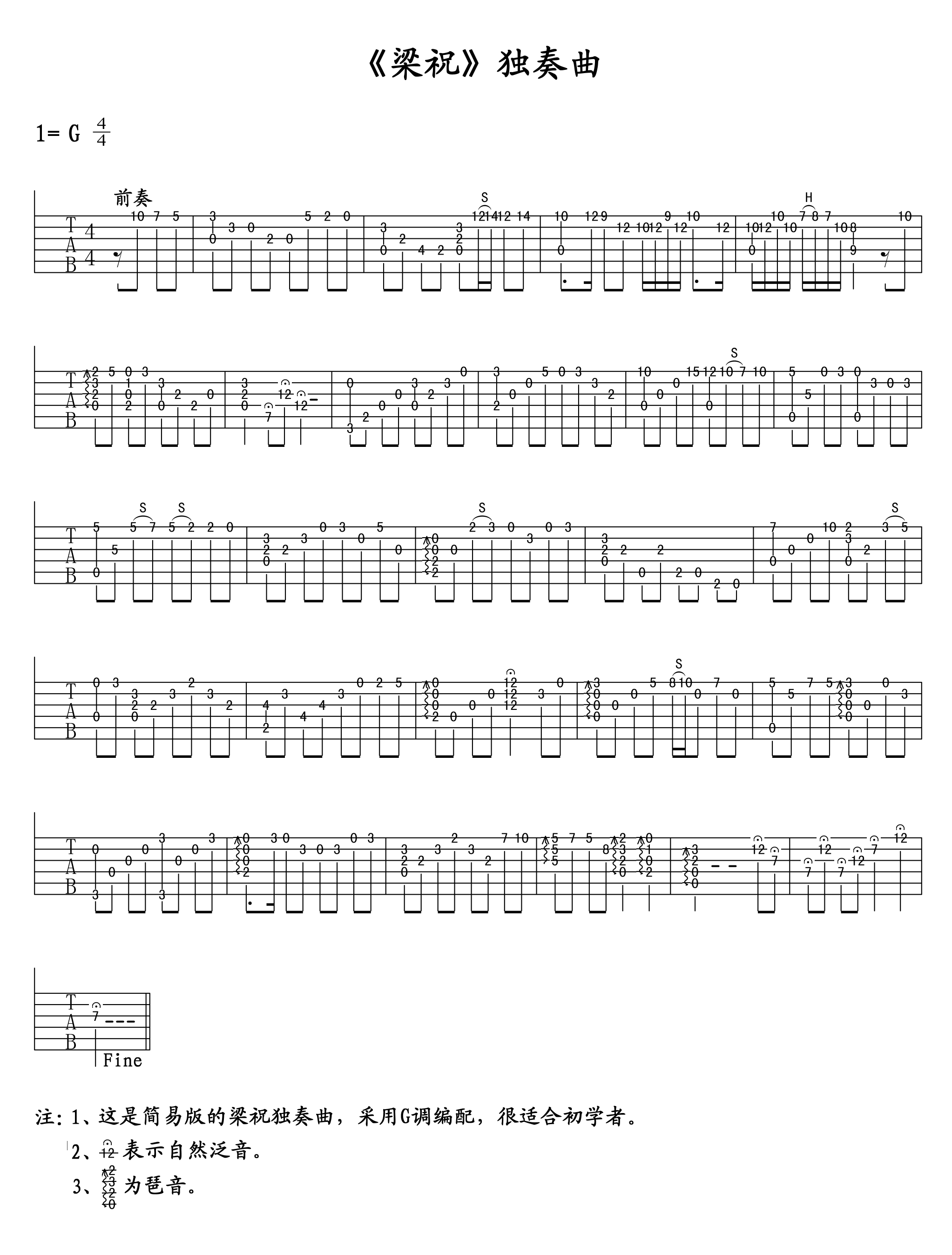 吉他谱 | 经典指弹《梁祝》