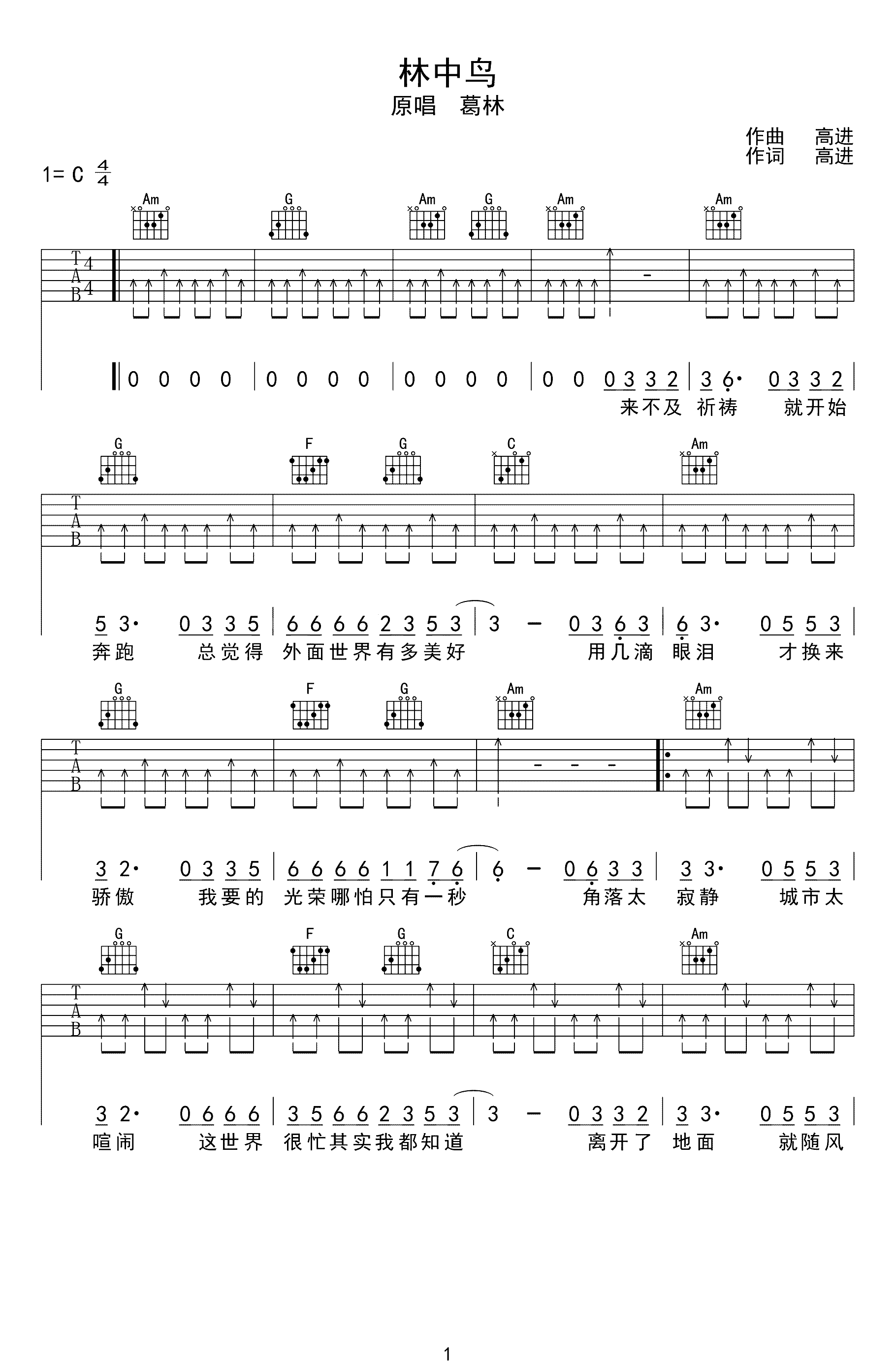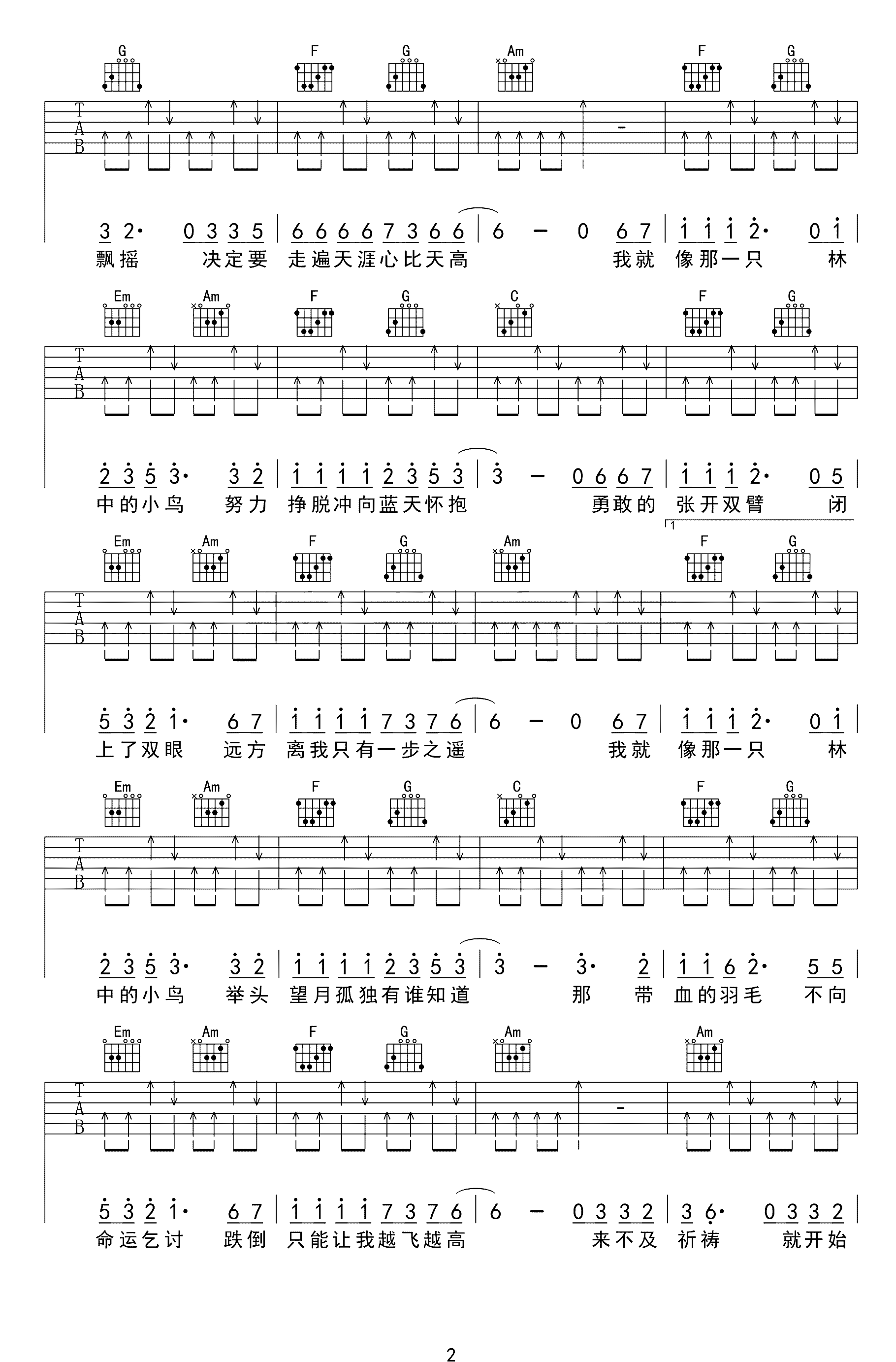 吉他谱 | 热门弹唱《林中鸟》