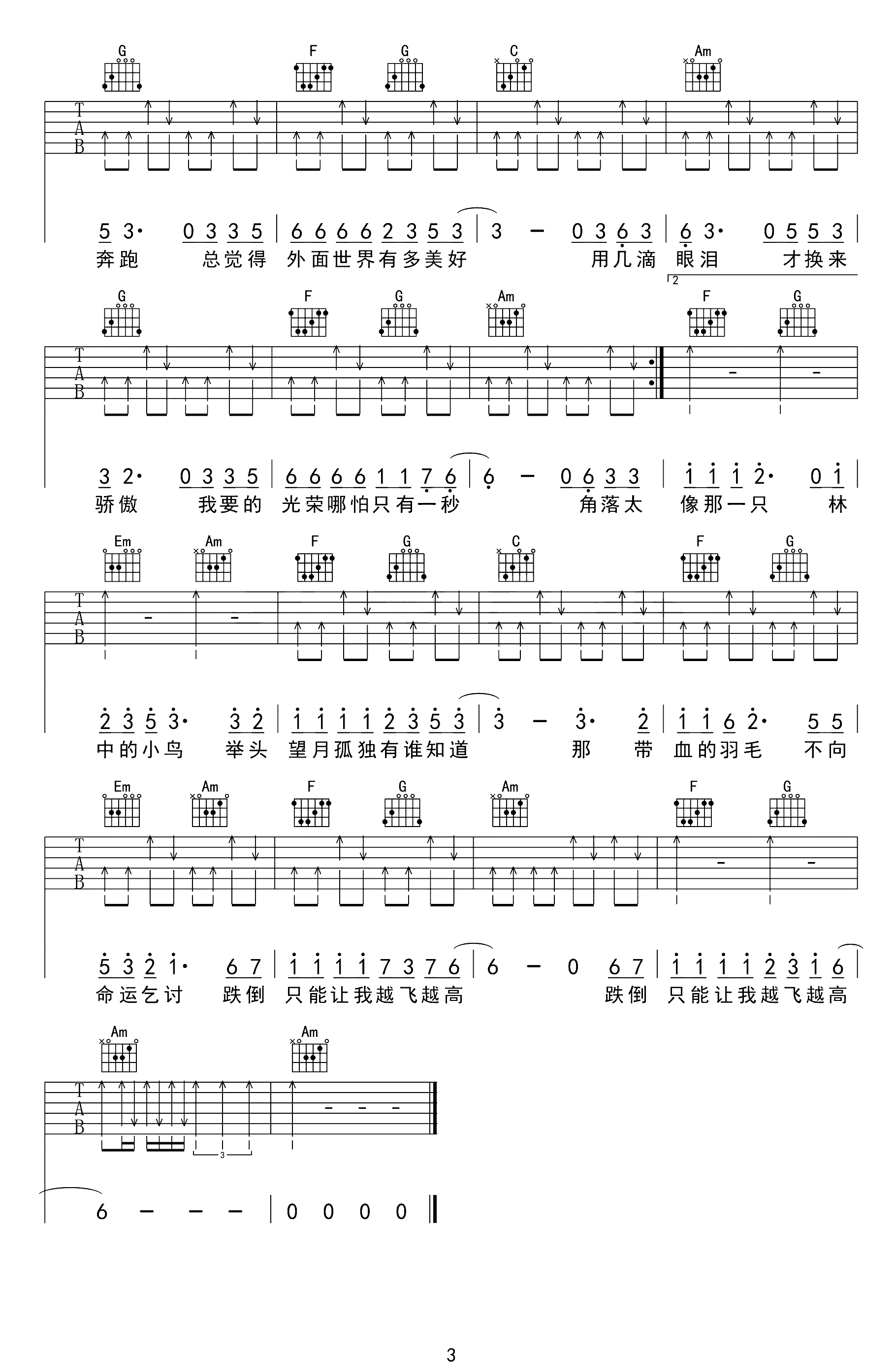 飞得更高吉他谱