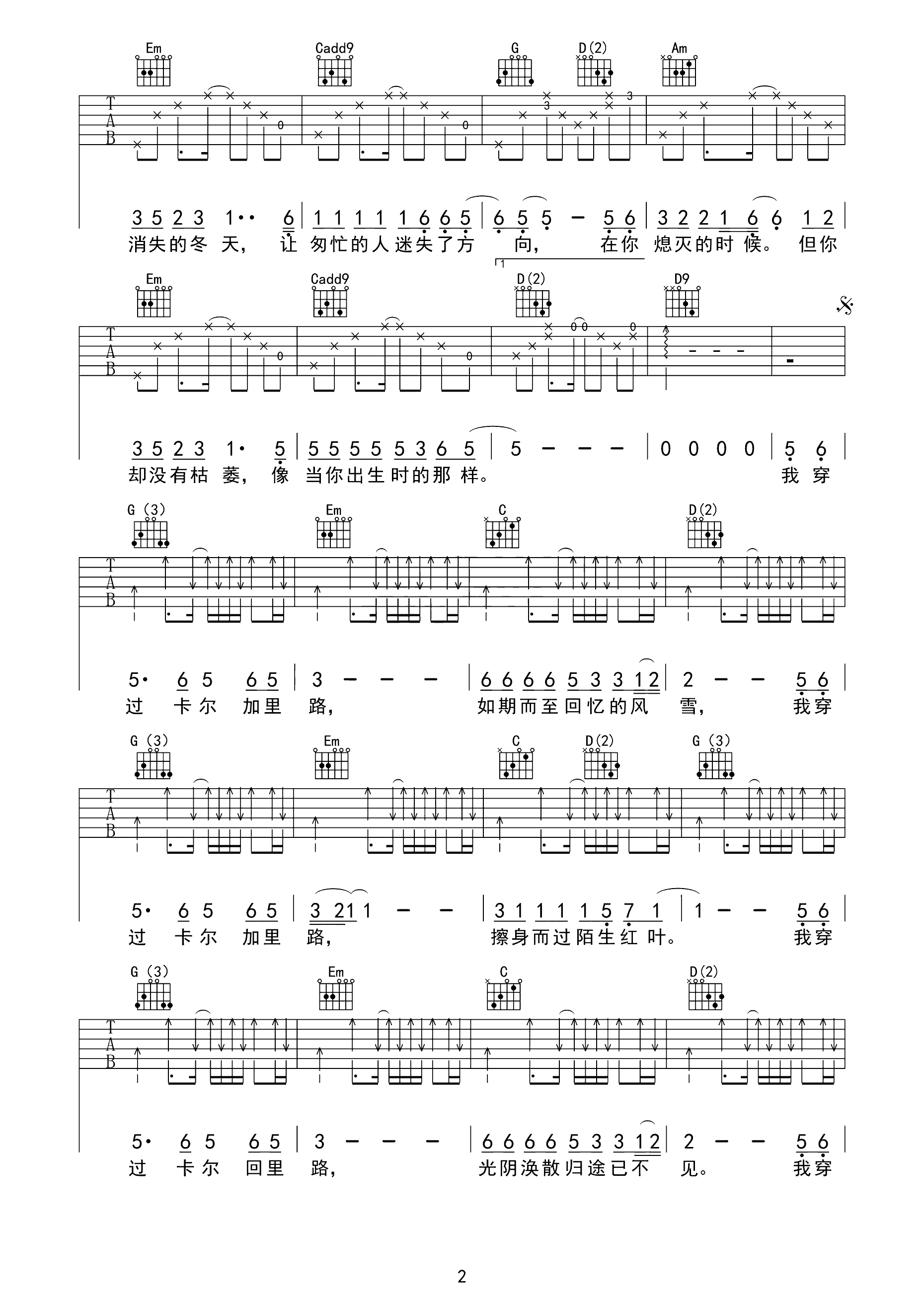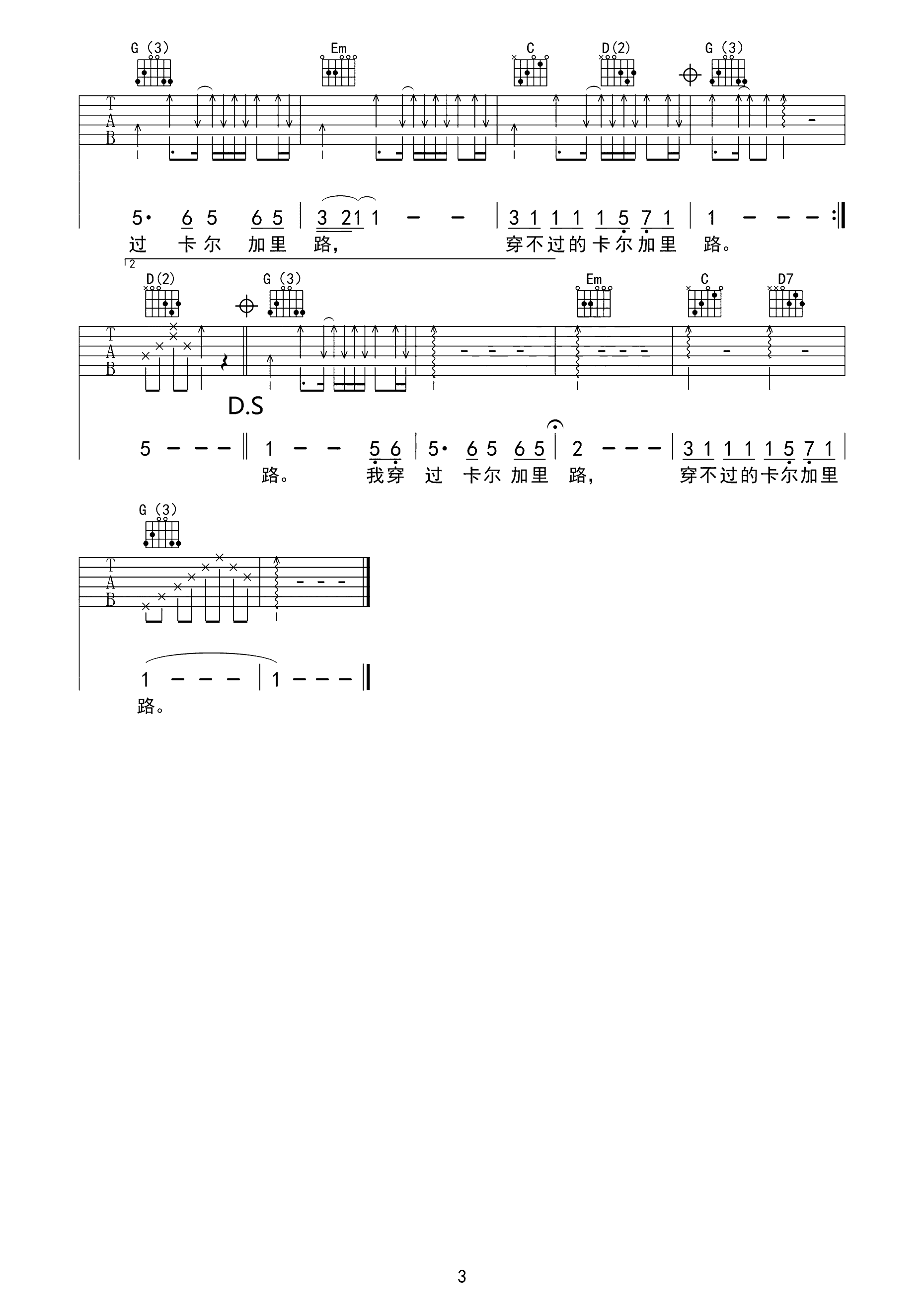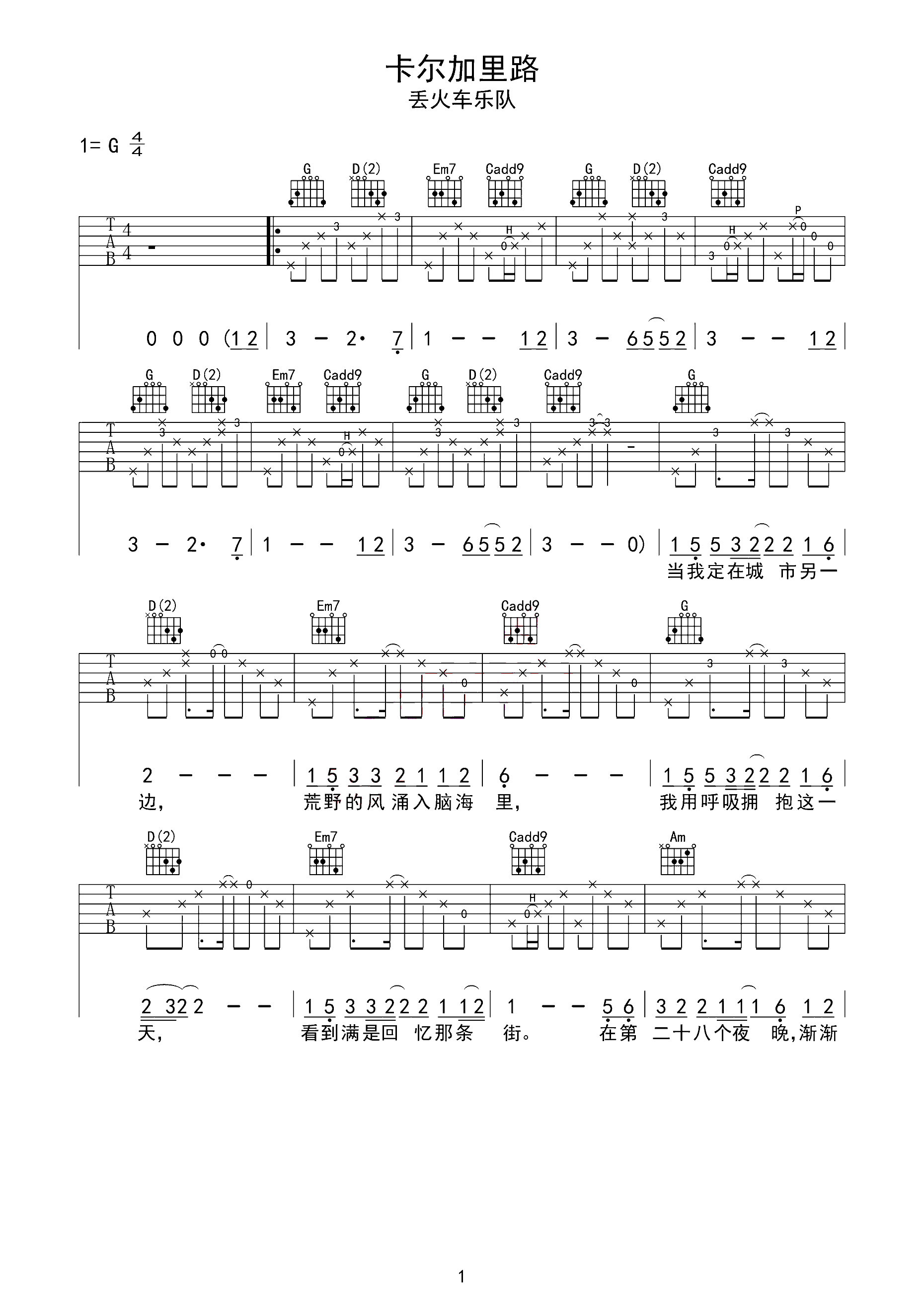 吉他谱 | 热门弹唱《卡尔加里路》