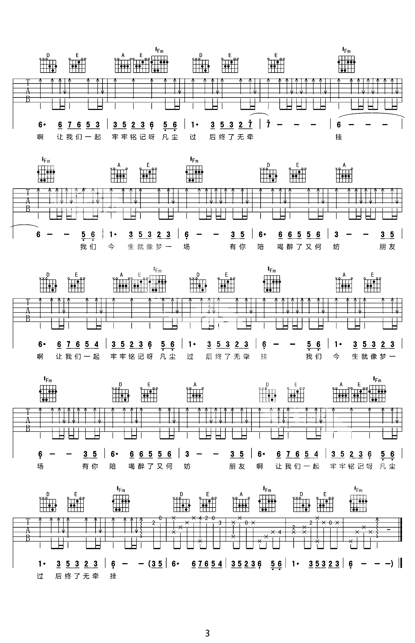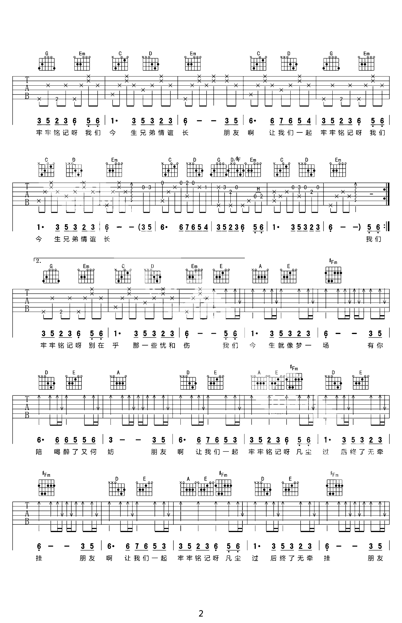 相逢是首歌 高清吉他谱