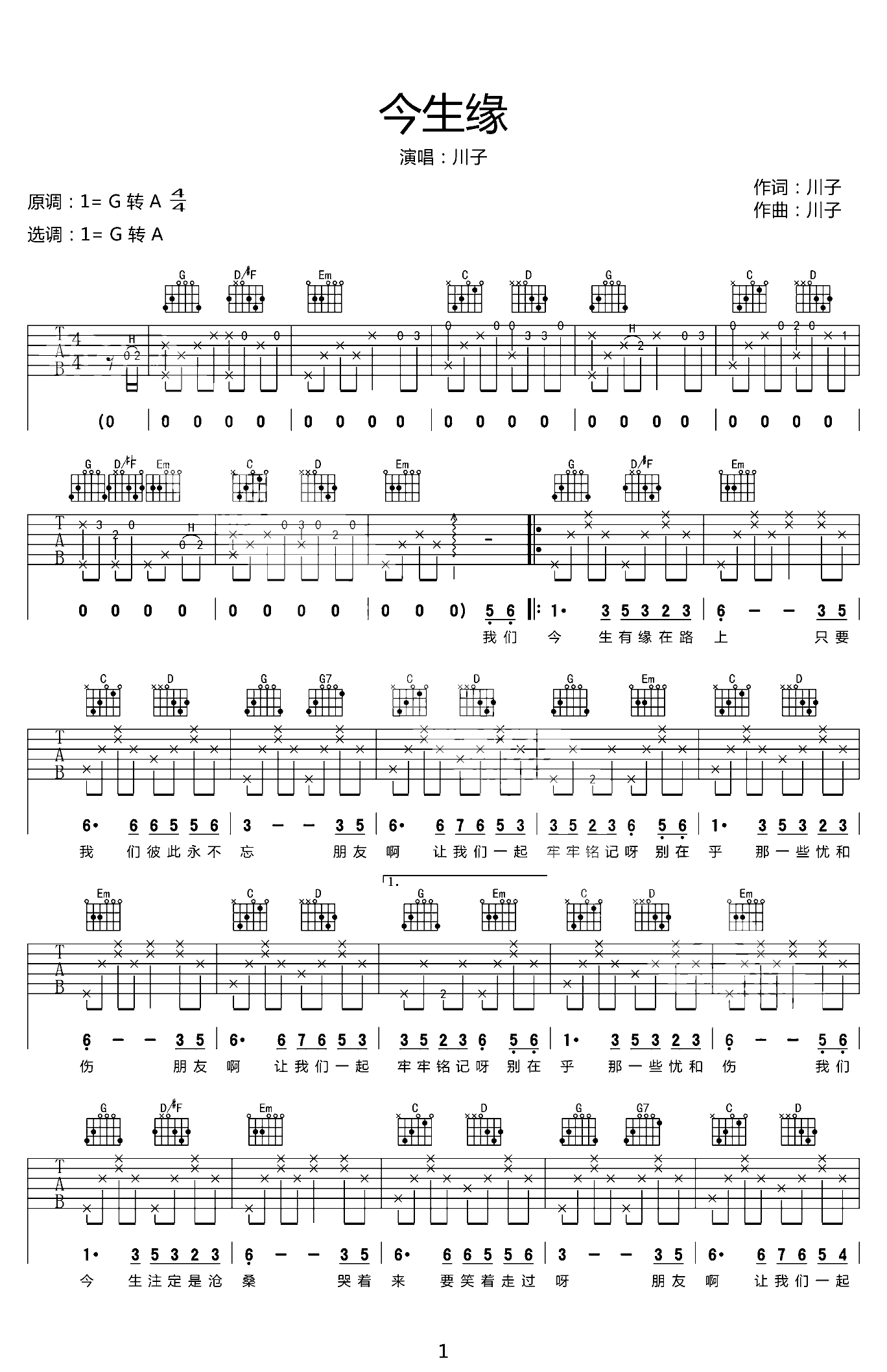 吉他谱 | 热门弹唱《今生缘》