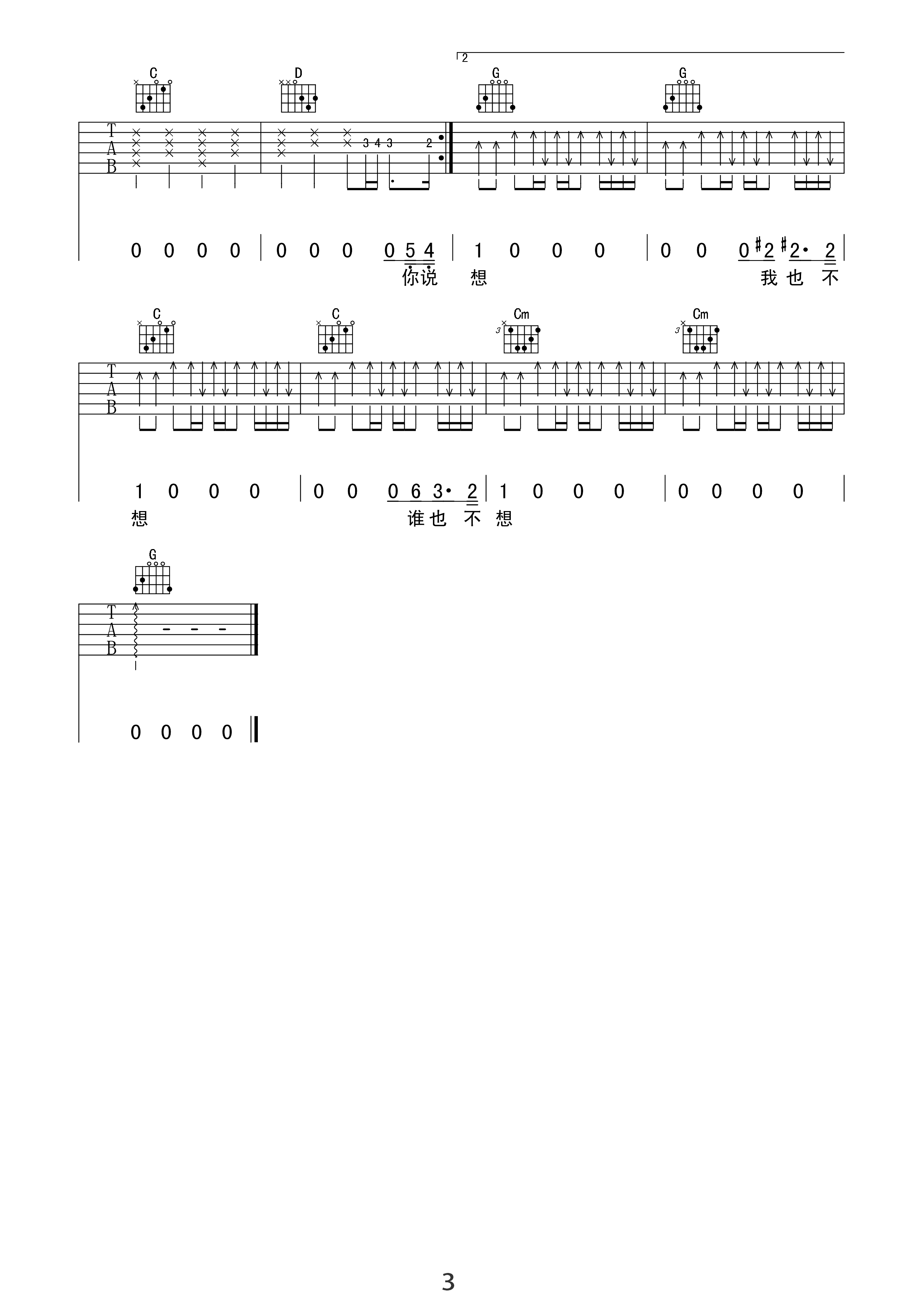 你笑起来真好看指弹谱_C调_吉他独奏谱_
