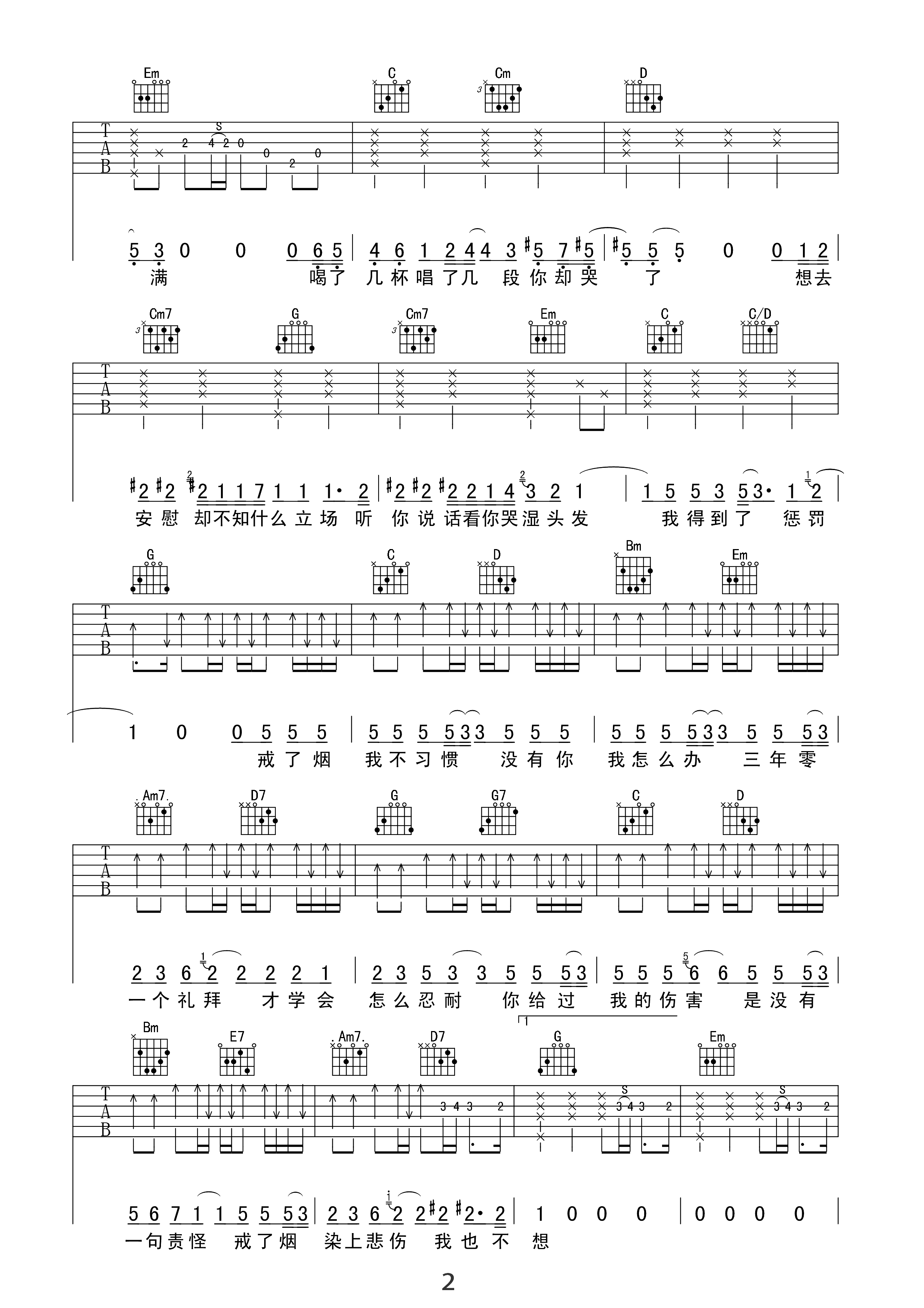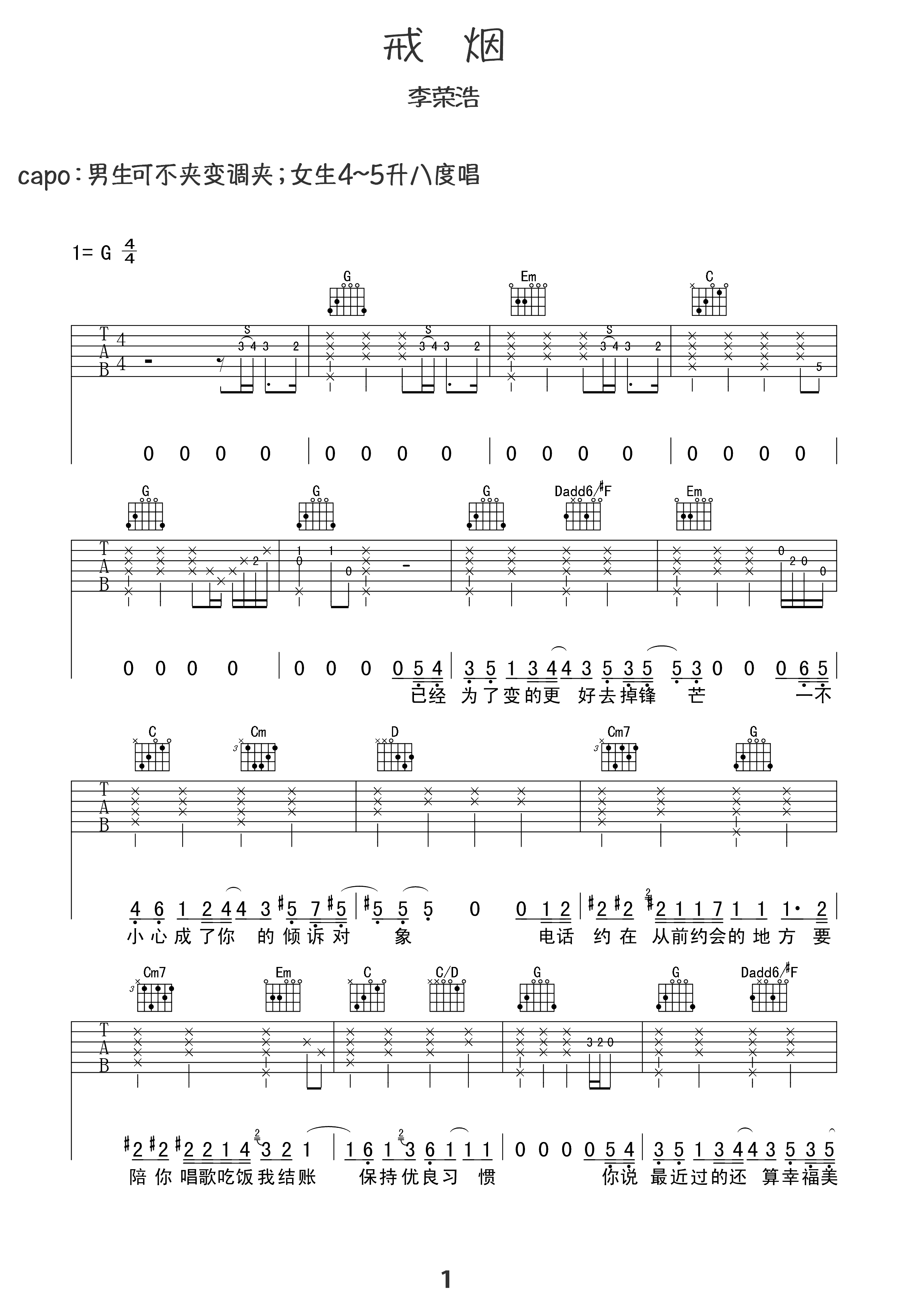 吉他谱 | 热门弹唱《戒烟》