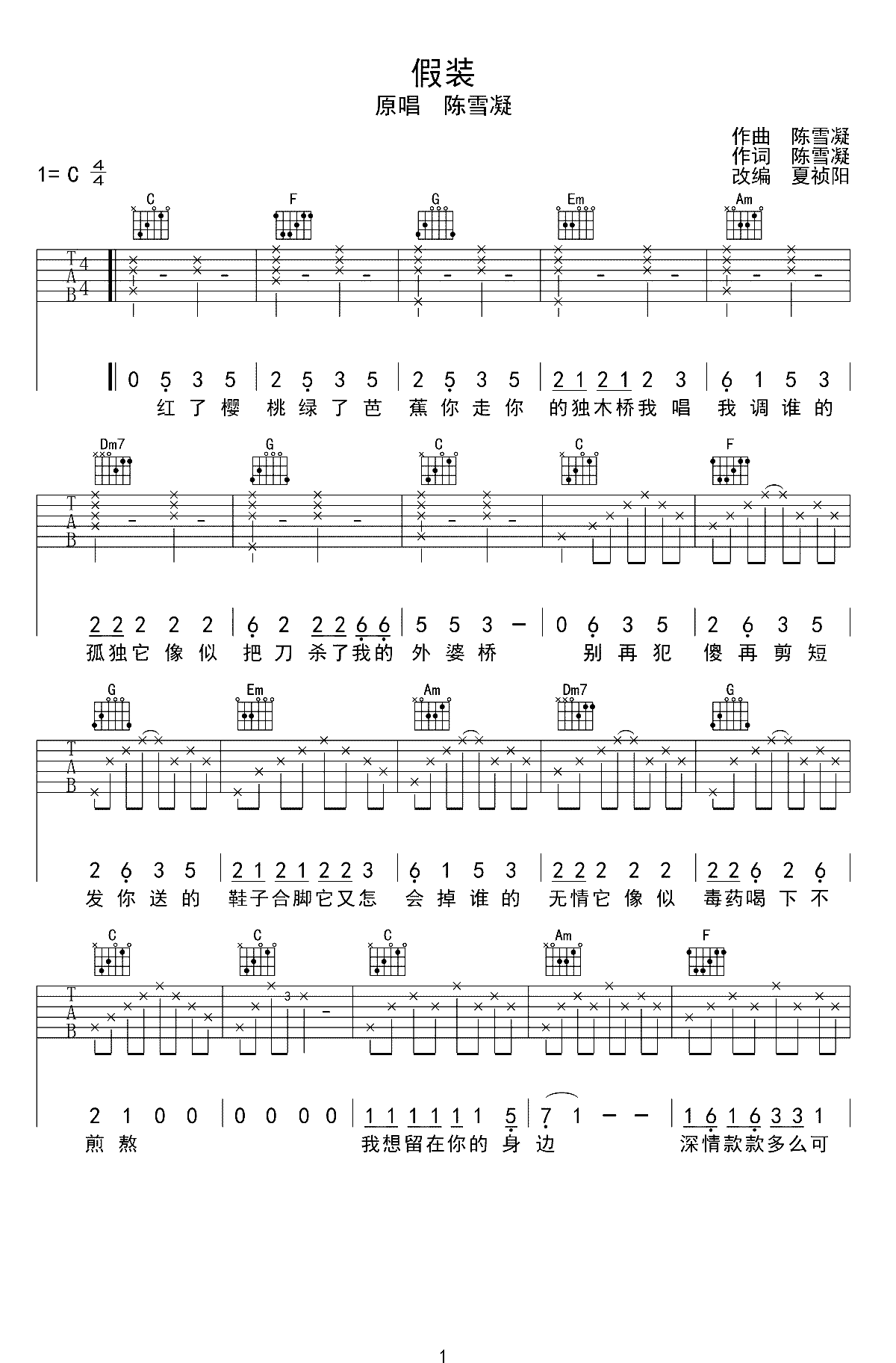 吉他谱 | 热门弹唱《假装》