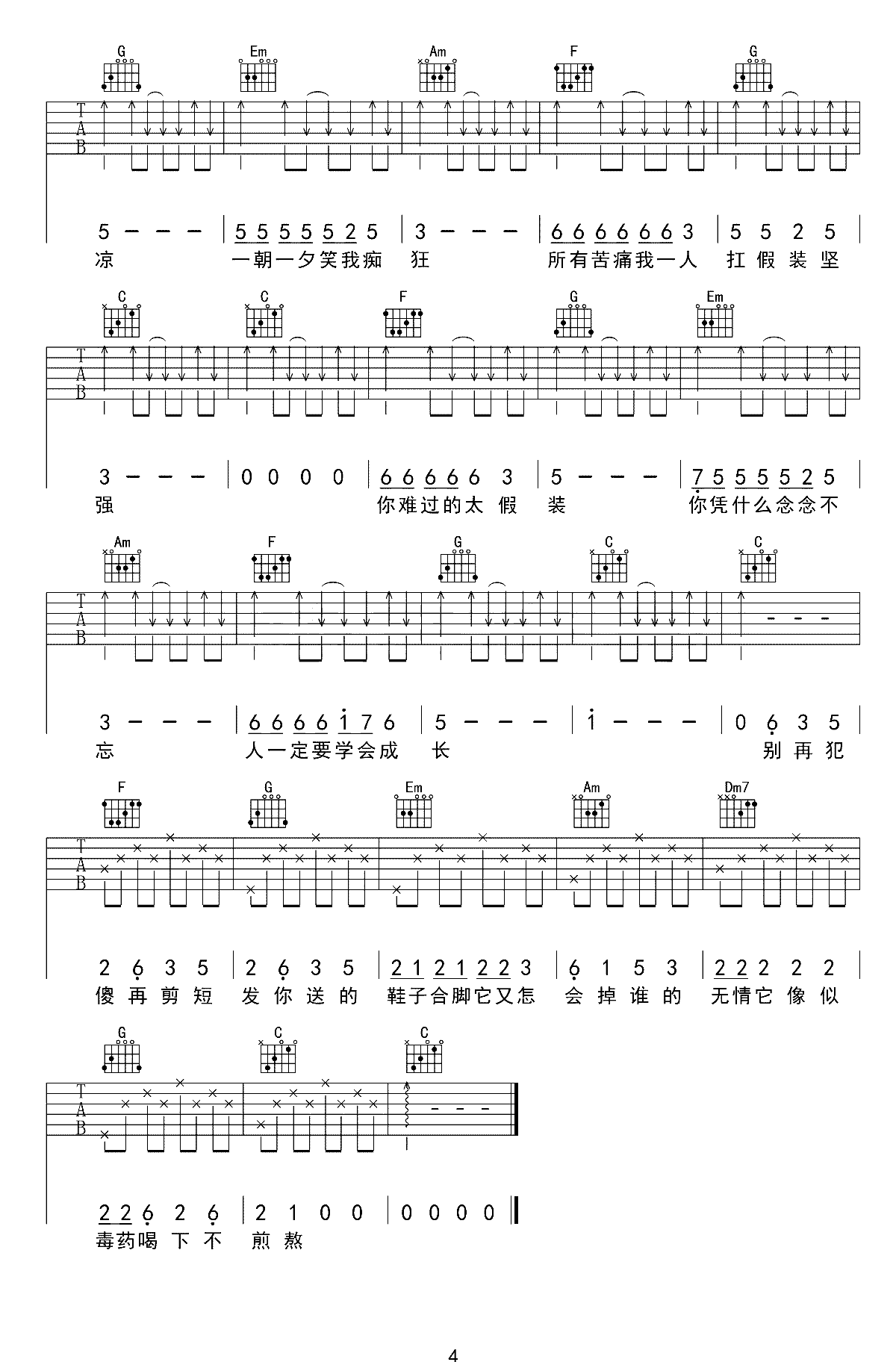 生生吉他谱_C调版